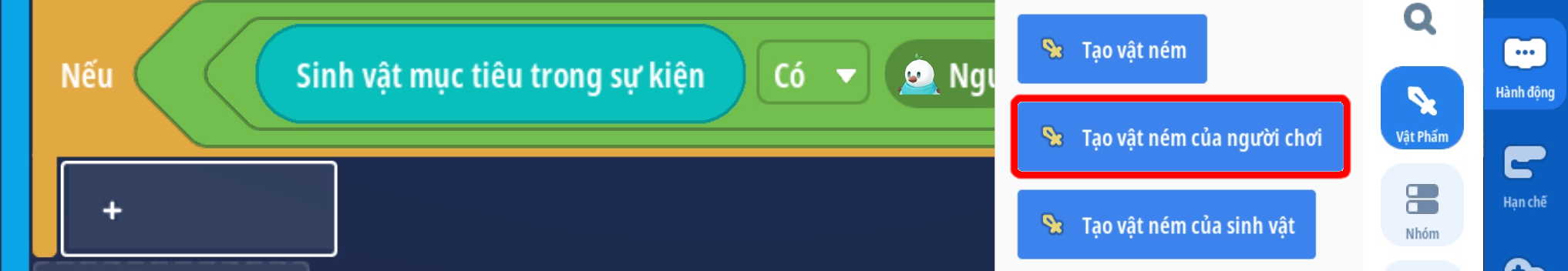 - Bắn vật ném đã tạo thuộc về người chơi kích hoạt sự kiện tại vị trí sinh vật mục tiêu