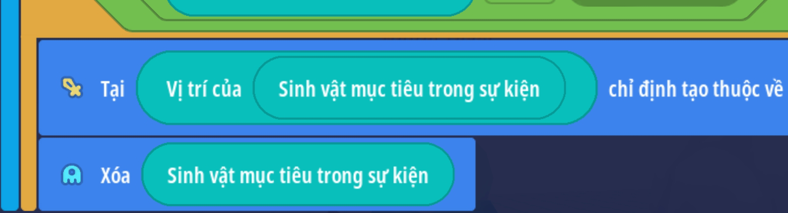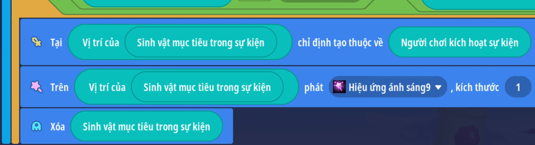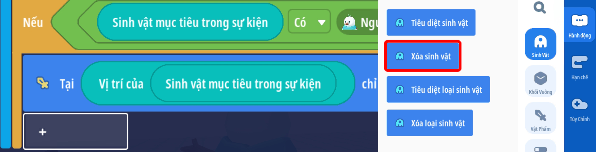 - Xoá sinh vật mục tiêu ( Hành động này nên đặt cuối cùng hoặc đã có hành động thay đổi vị trí sự kiện thành vị trí sinh vật trước đó )