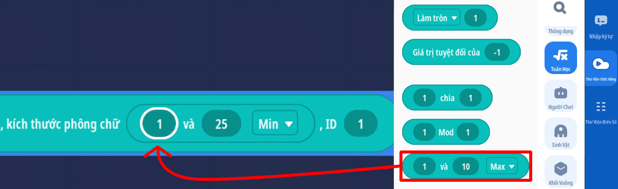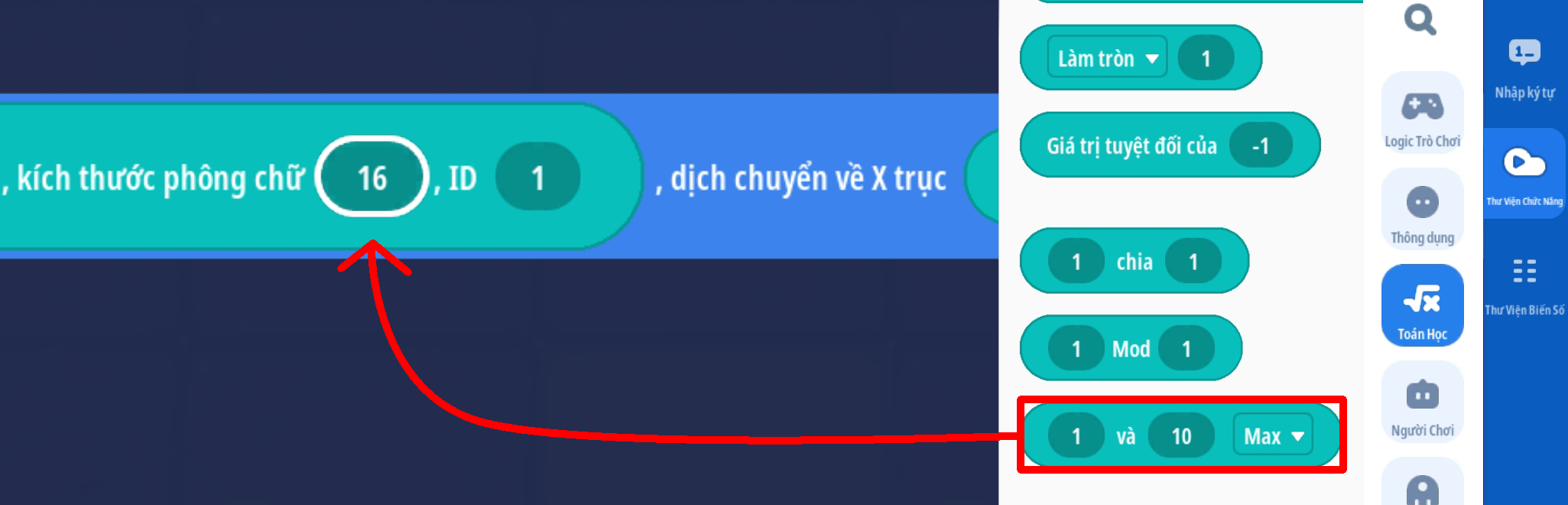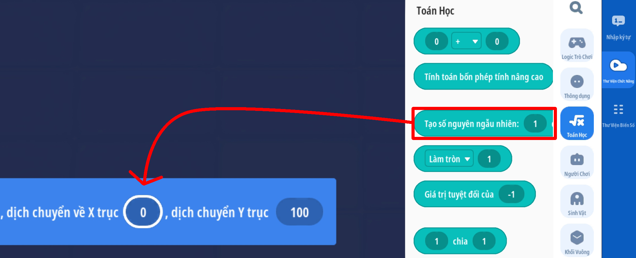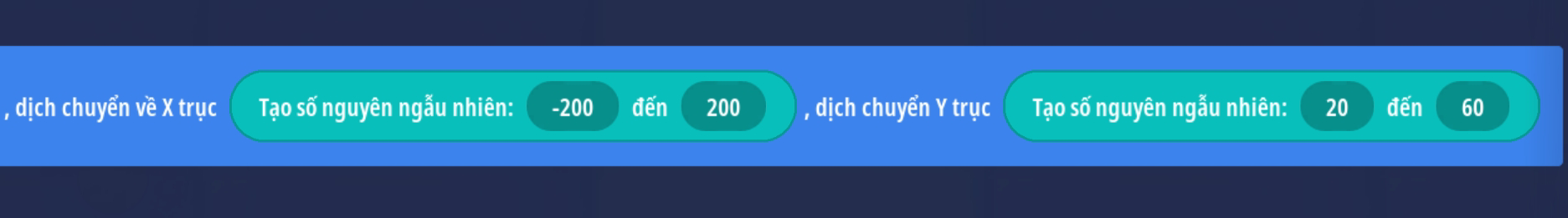 - Thiết lập giá trị x, y ngẫu nhiên phù hợp