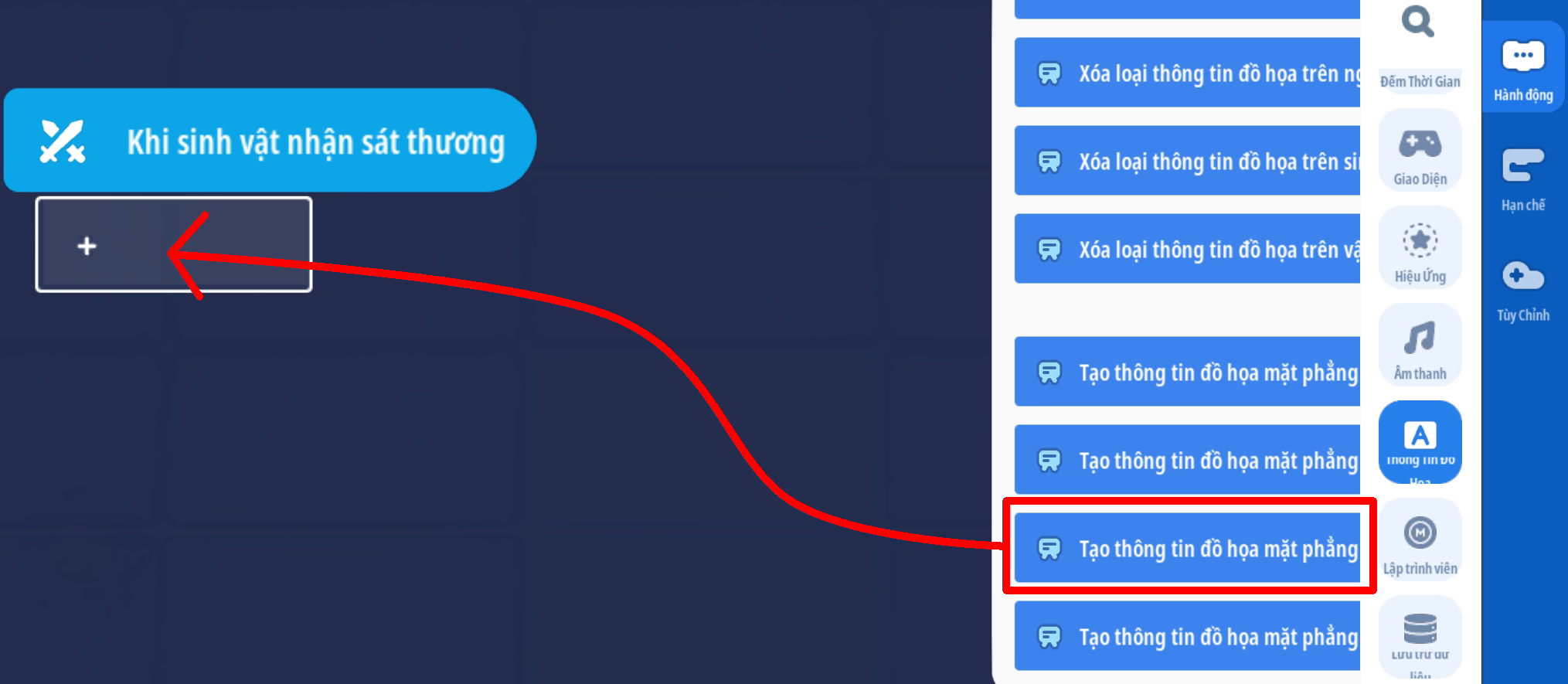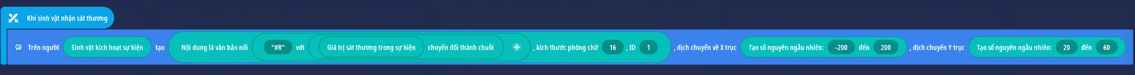 - Tạo sự kiện sinh vật nhận sát thương sẽ hiện văn bản nổi