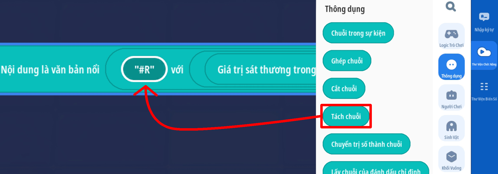 - Từ hành động trước đó thiết lập Tách chuỗi