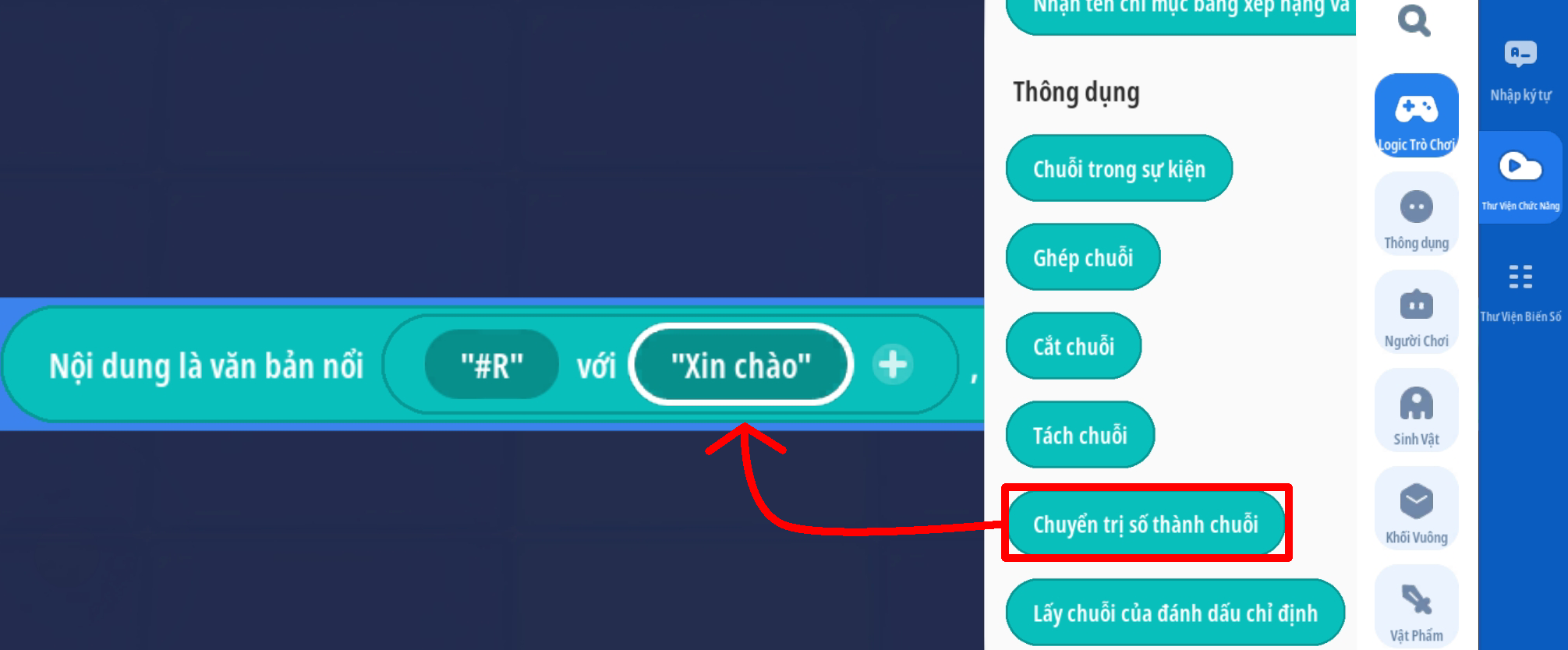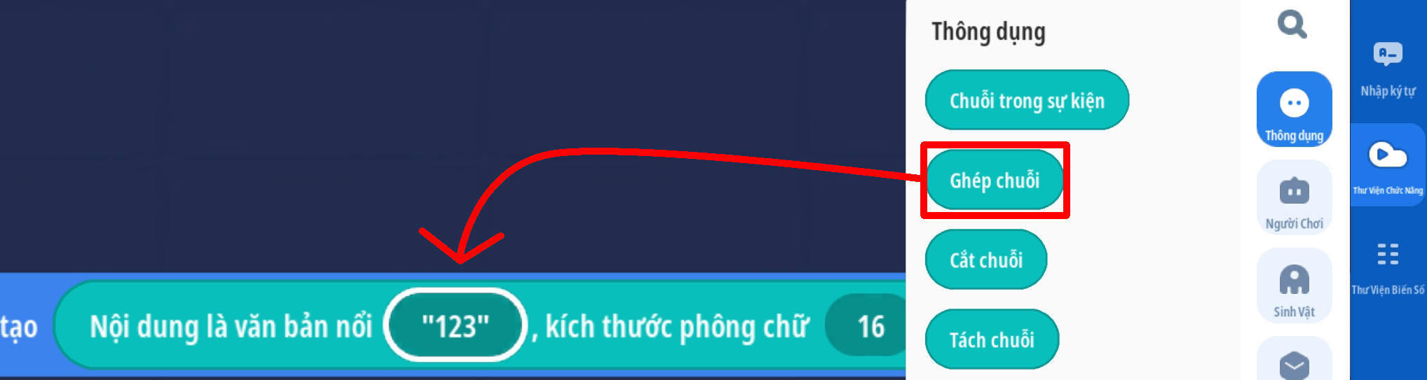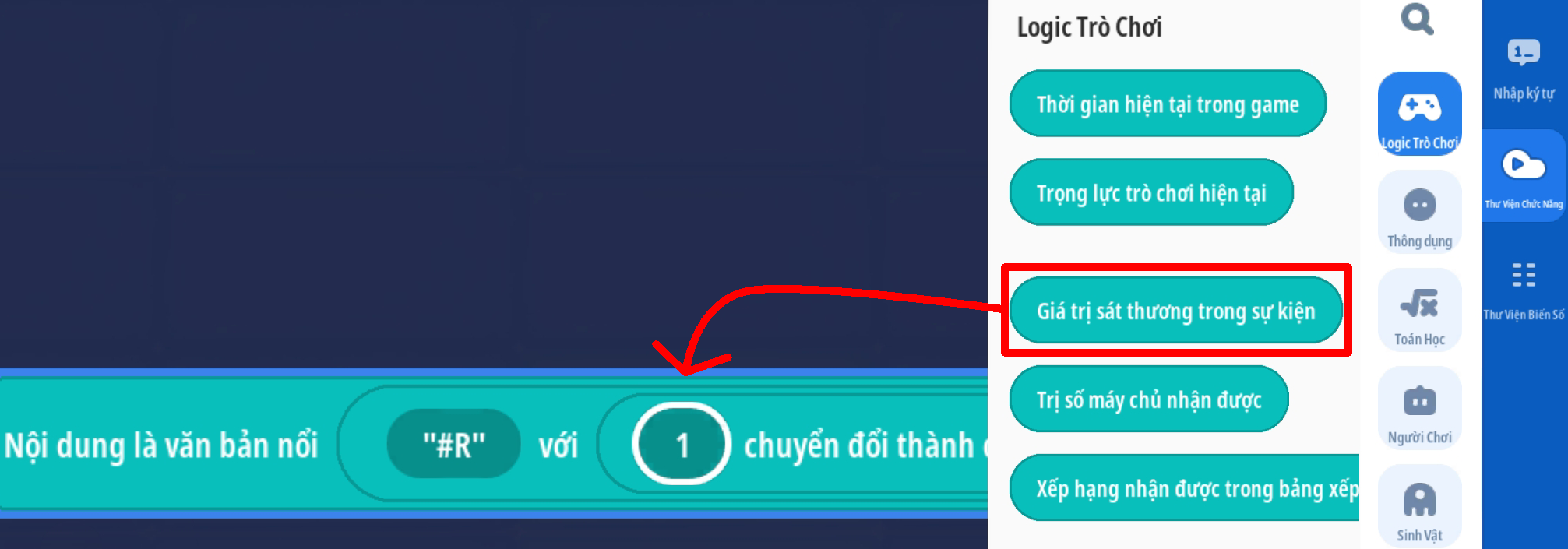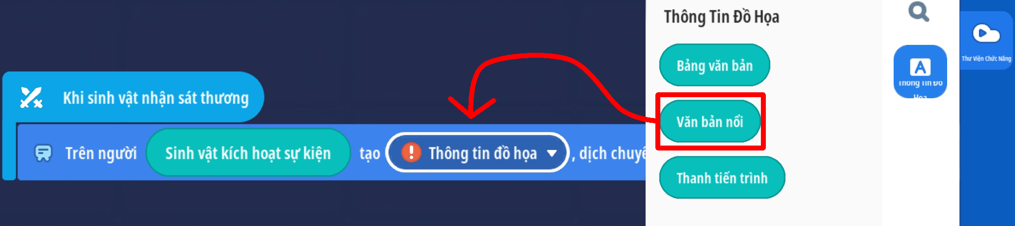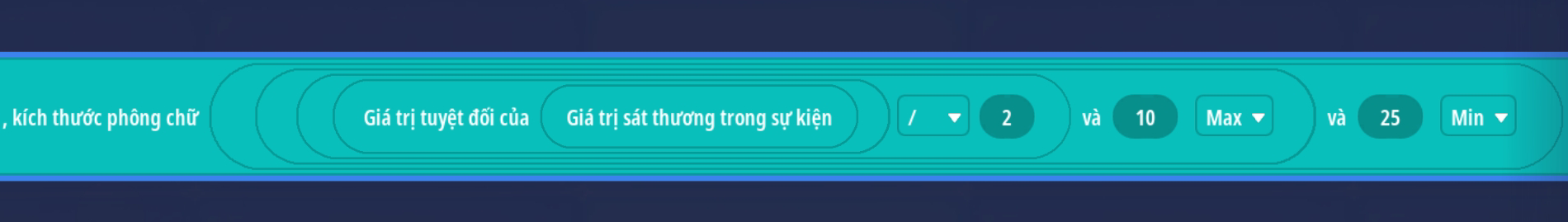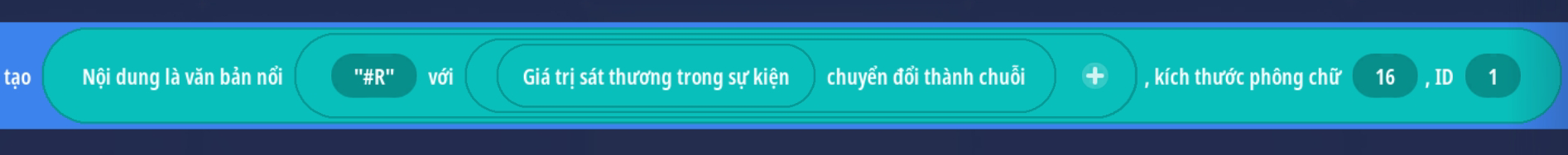 - Tạo nội dung văn bản nổi là giá trị sát thương trong sự kiện ( có thêm mã màu để tô điểm nổi bật văn bản )