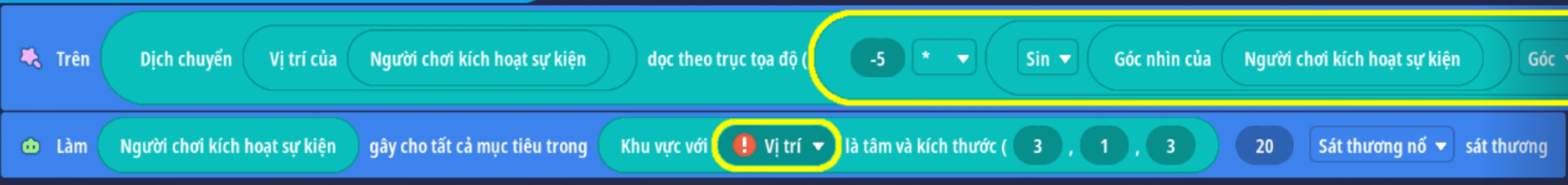 - Phát hiệu ứng hướng tới phía trước người chơi với khoảng cách thiết lập phù hợp
