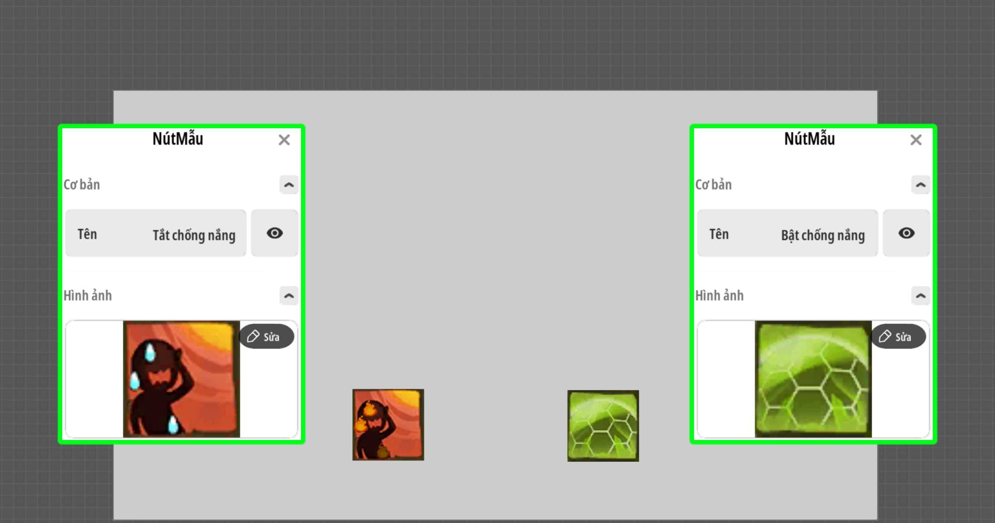- Chú ý: Sử dụng sự kiện chỉ định để kích hoạt chức năng Bản mẫu sử dụng kích hoạt qua thành phần giao diện