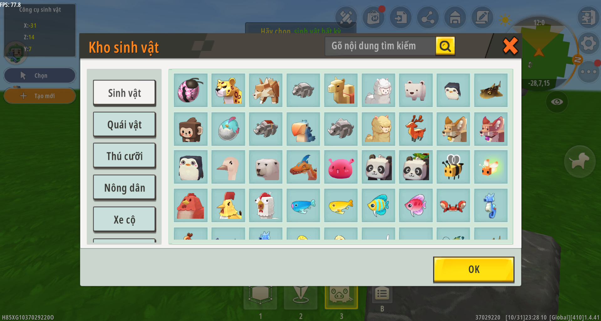 5. Sinh vật sẽ được tạo khi bạn chuyển chế độ sang chế độ chơi. \\