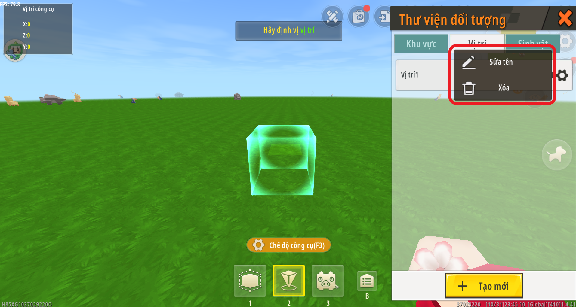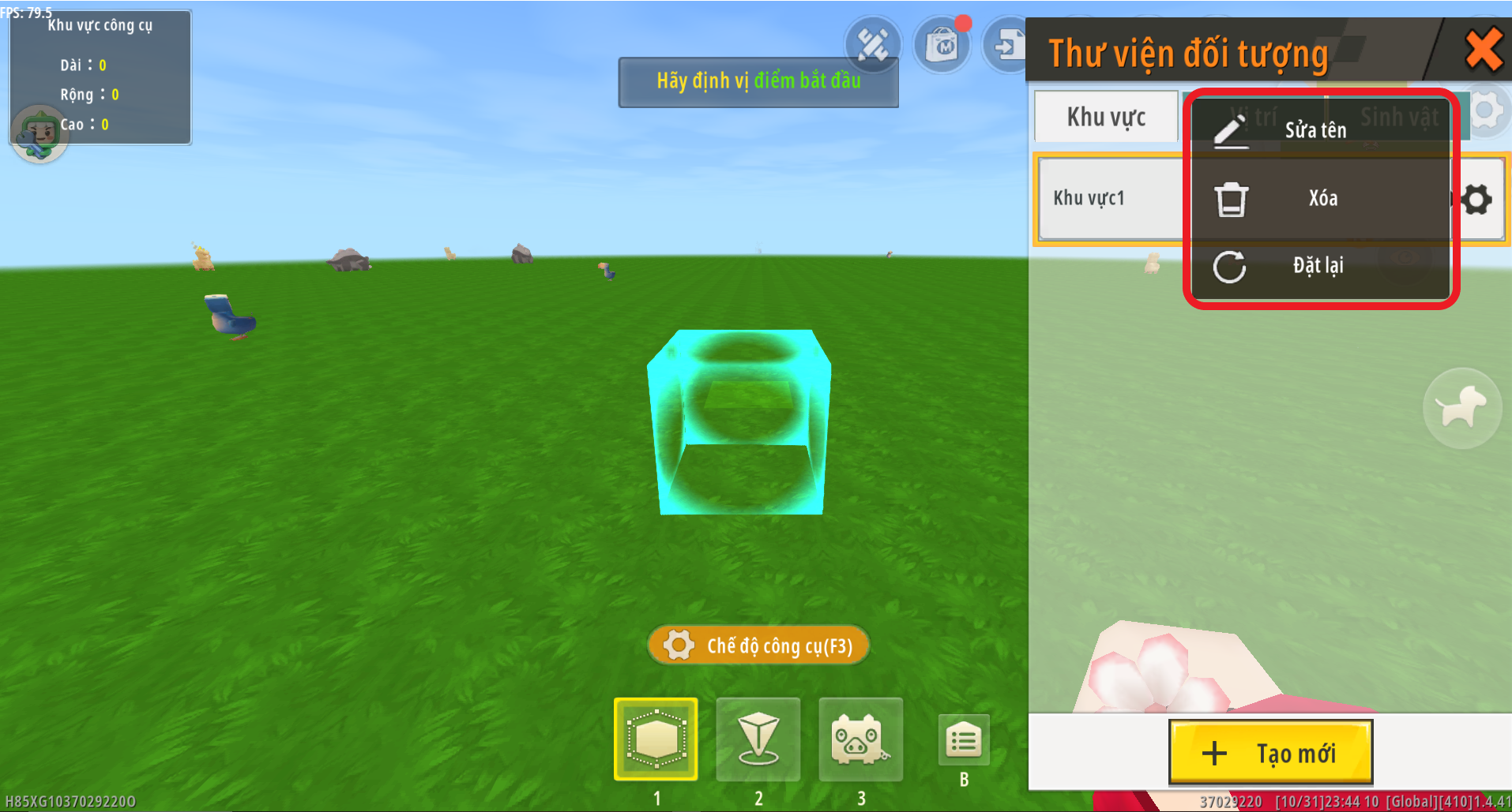 Các đối tượng mà chế độ công cụ có thể chỉnh sửa là vùng, vị trí và sinh vật.