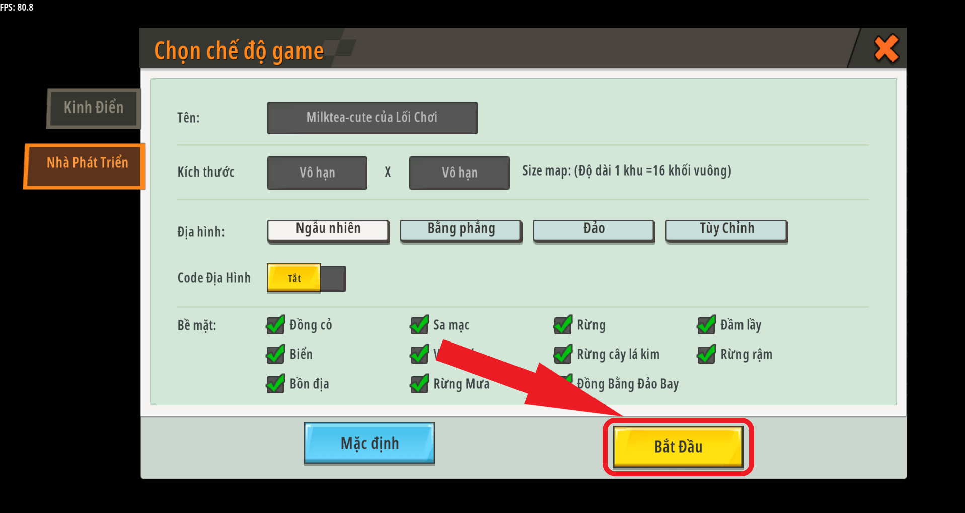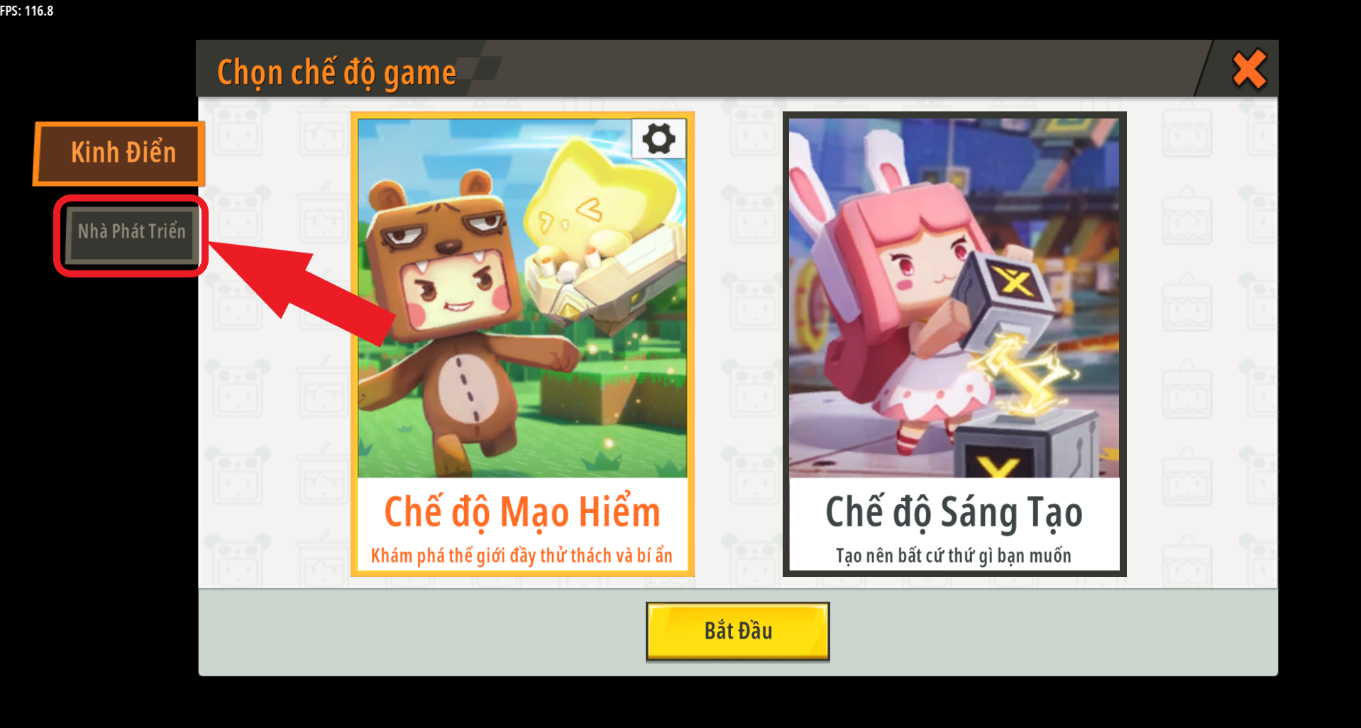 1.Tạo trò chơi ở chế độ nhà phát triển.
