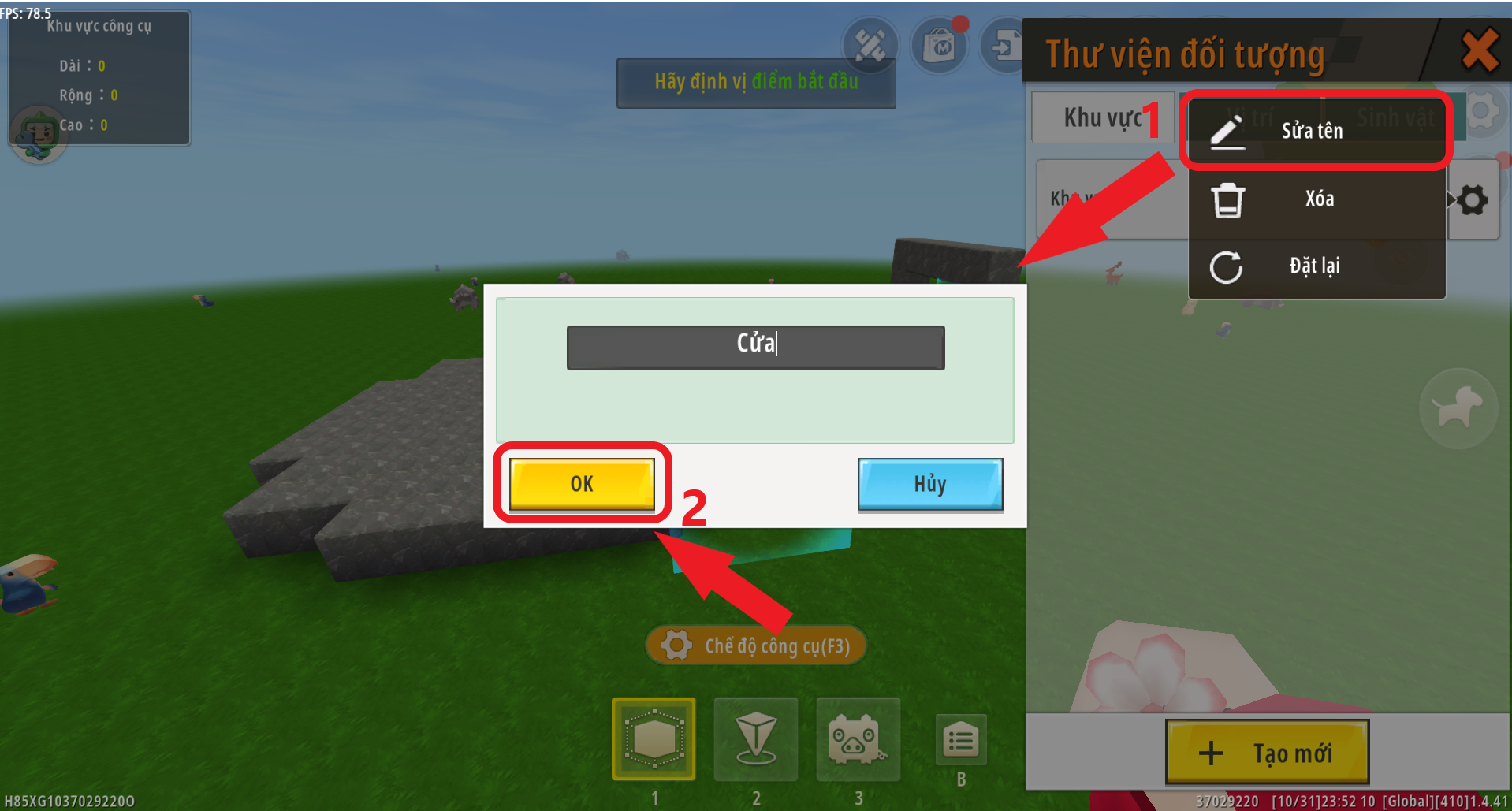 3.Vị trí sẽ được tạo và kích thước của vị trí tối thiểu phải là 1x1x1. \\