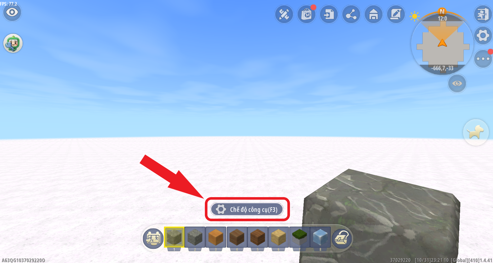 - PC: Nhấp vào nút “chế độ công cụ” trên màn hình hoặc nhấn “F3” trên bàn phím.
