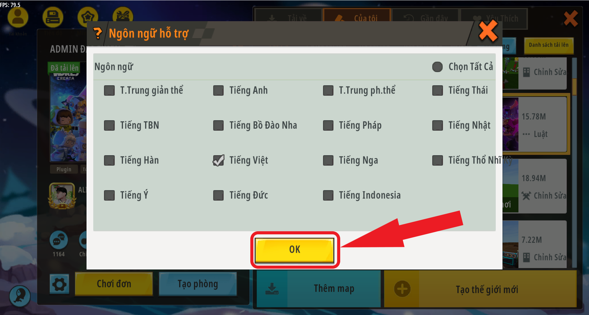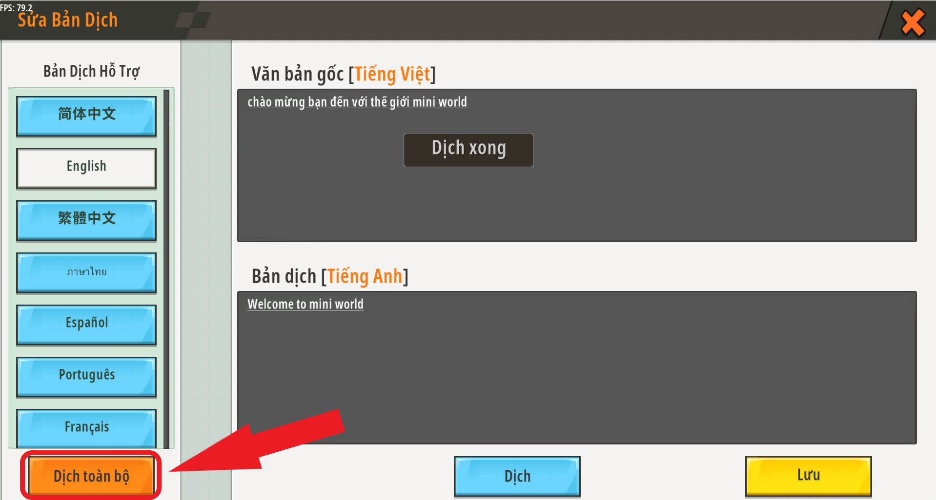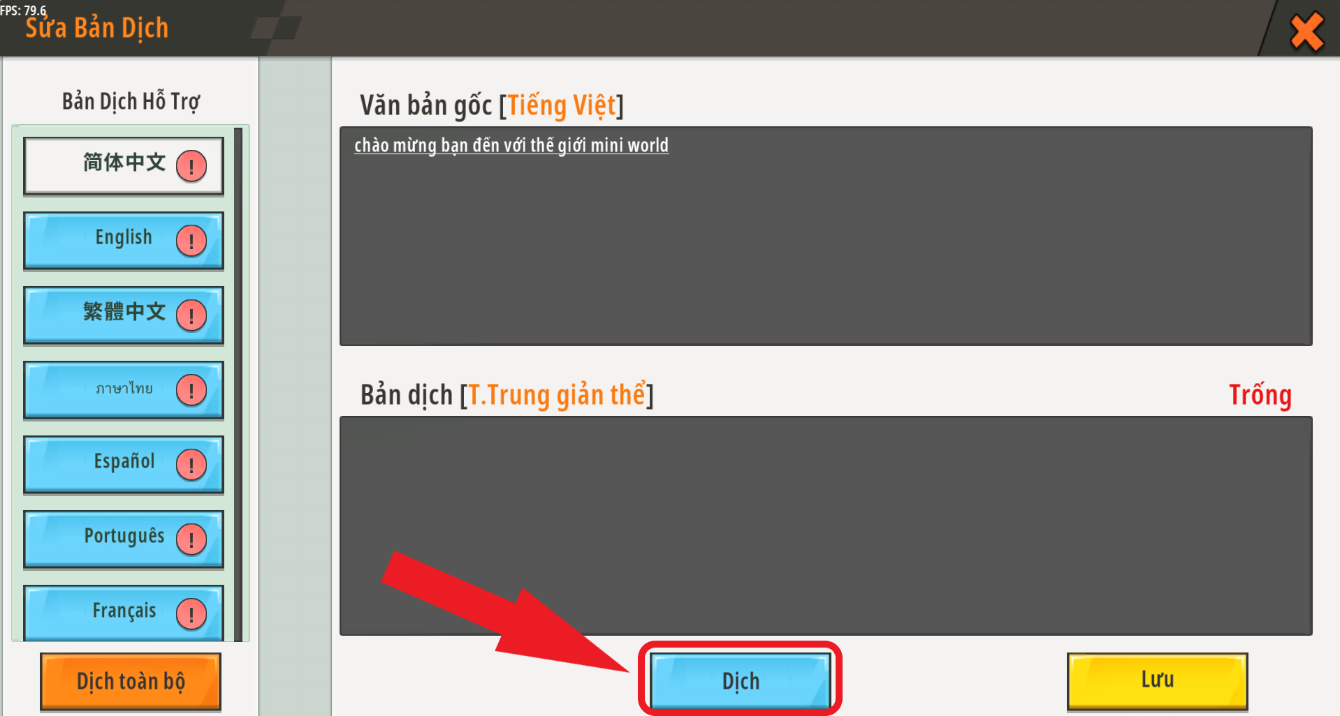 1. Nhấp vào “Trò chơi của tôi” → “Mở”, chọn bản đồ bạn muốn sử dụng chức năng dịch, nhấp vào nút “Dịch”.