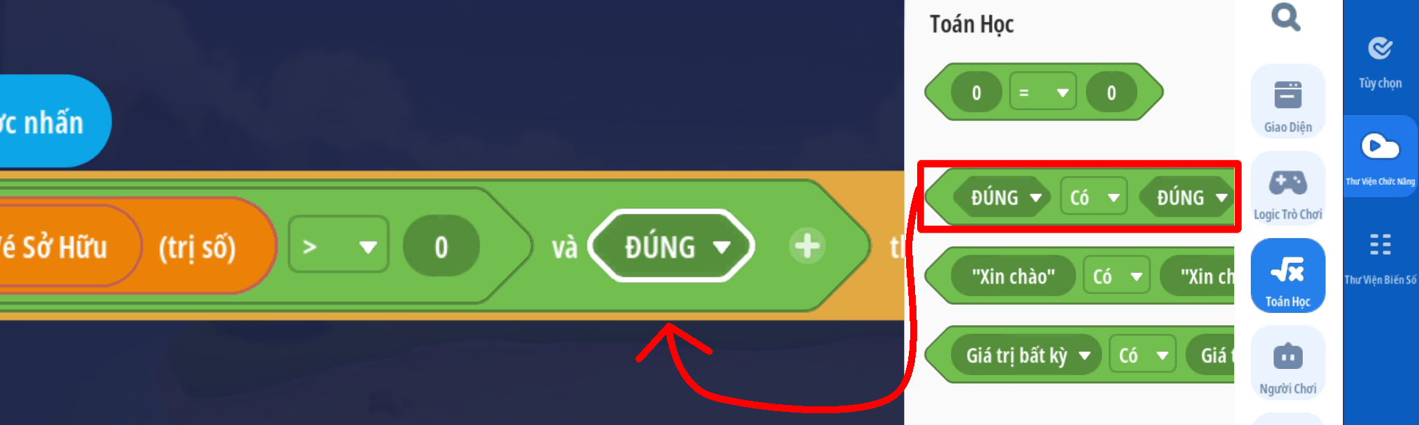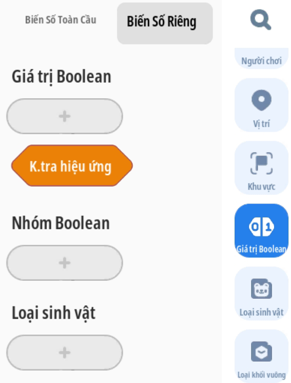 - Lưu ý: Giá trị biến Boolean mặc định phải là: SAI