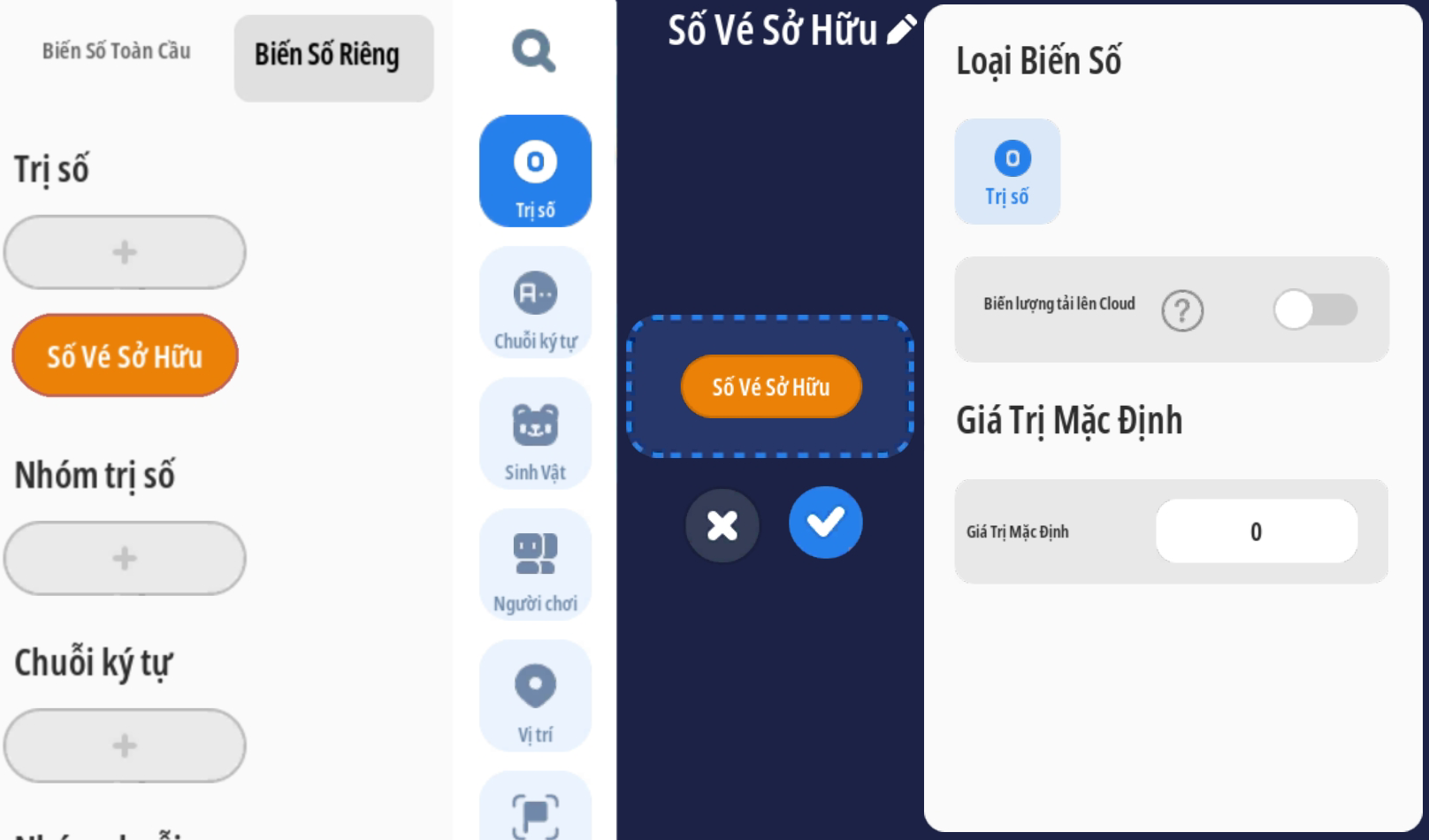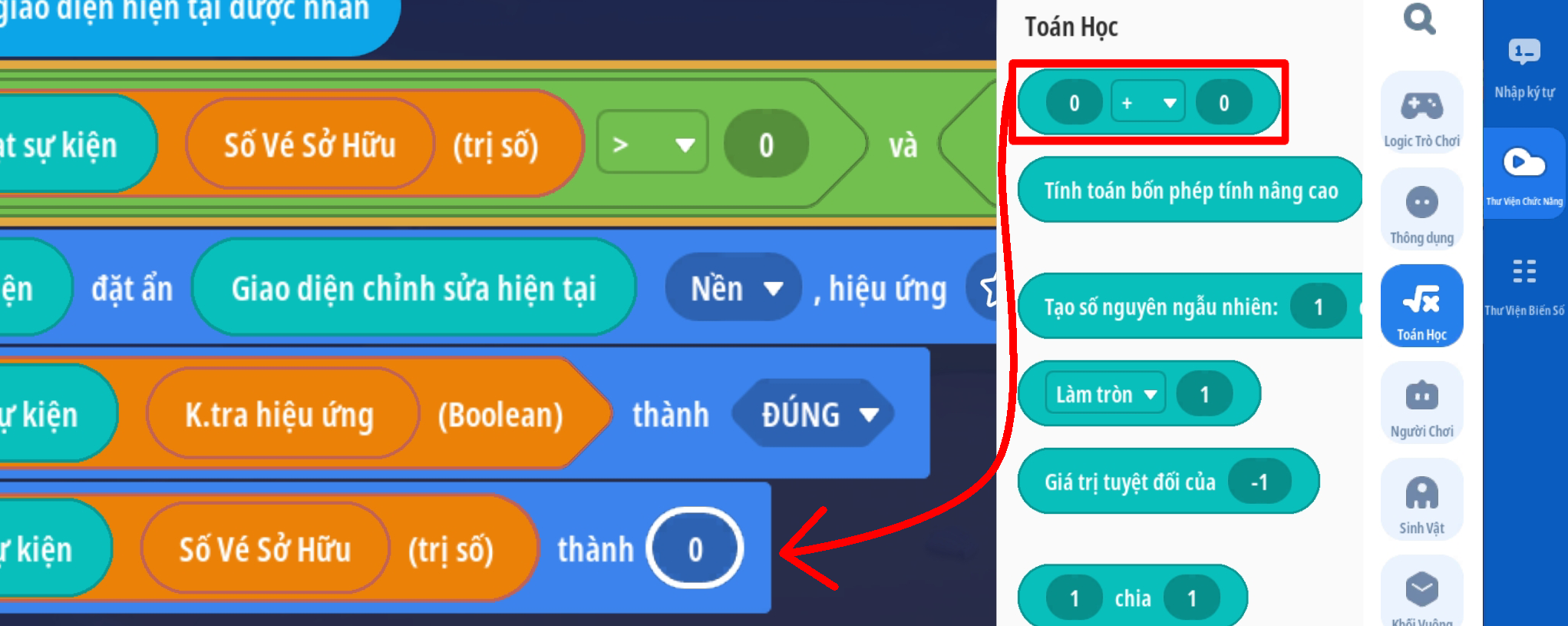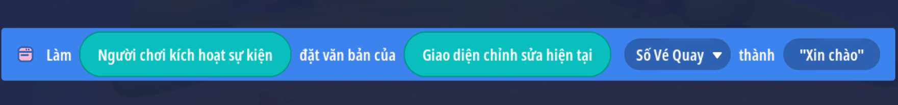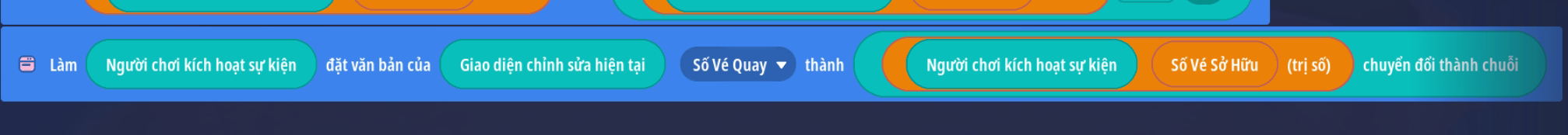 - Đặt giá trị: “Số vé sở hữu” trừ 1 giá trị ( trừ 1 vé ) và đặt văn bản thành phần 'Số Vé Quay' thánh giá trị “Số Vé Sở Hữu” để cập nhật số vé hiện tại