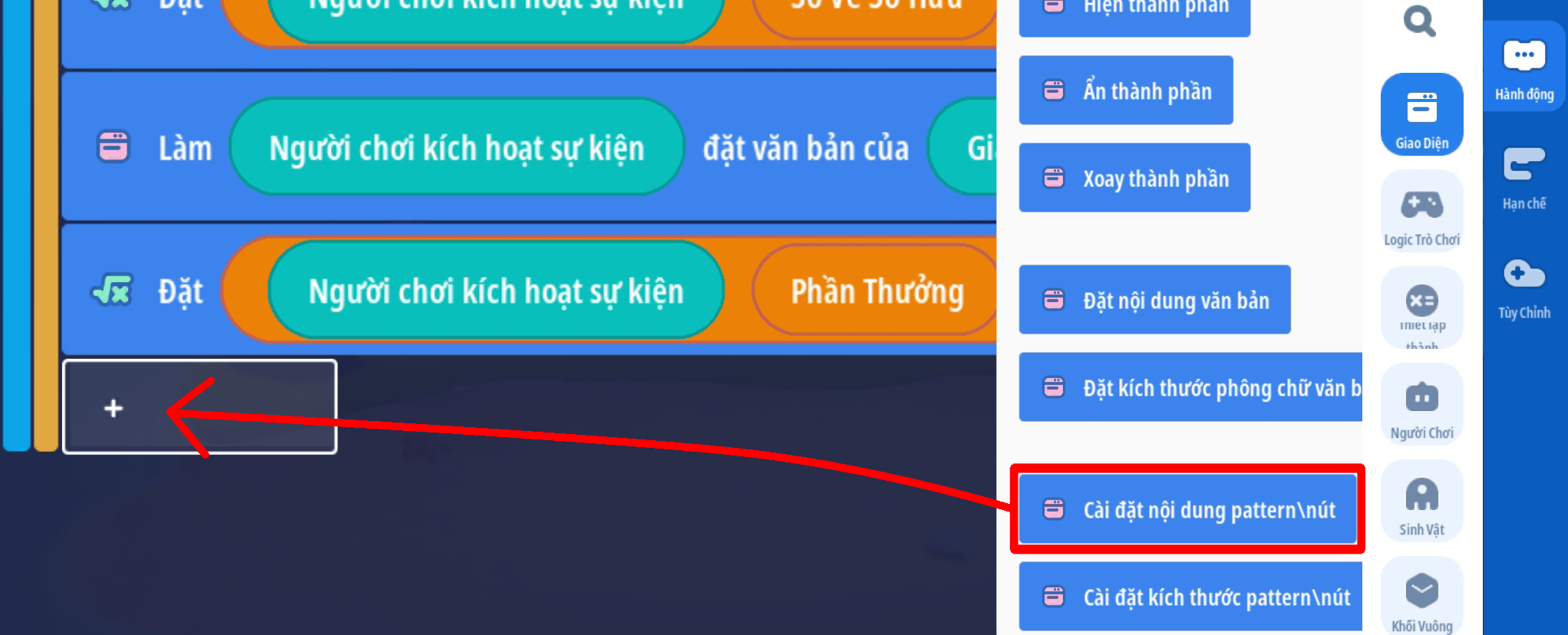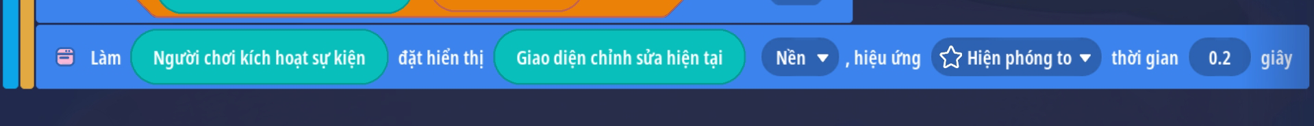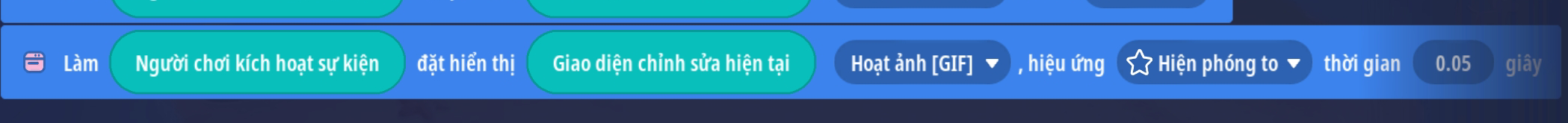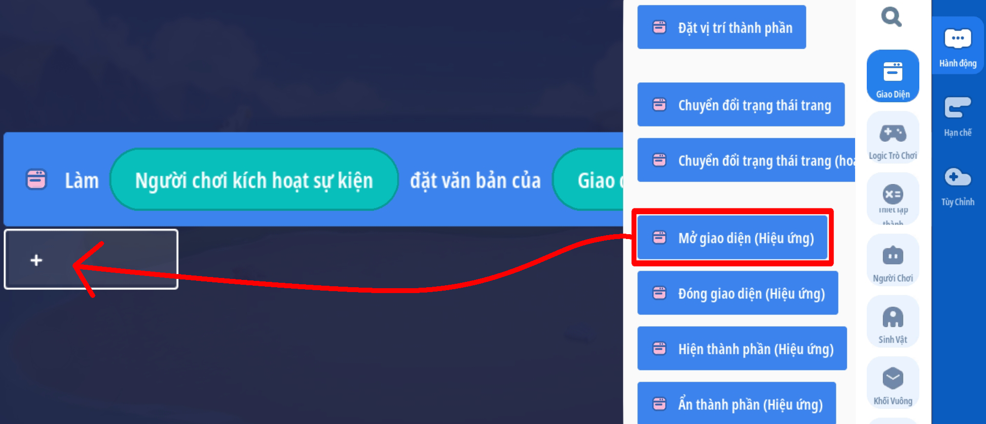 1. Tạo trigger mở giao diện — hiển thị thành phần và trigger đóng giao diện — ẩn thành phần. Bài hướng dẫn sẽ sử dụng các chức năng đóng mở giao diện, chức năng ẩn hiện thành phần có thể sử dụng tương tự