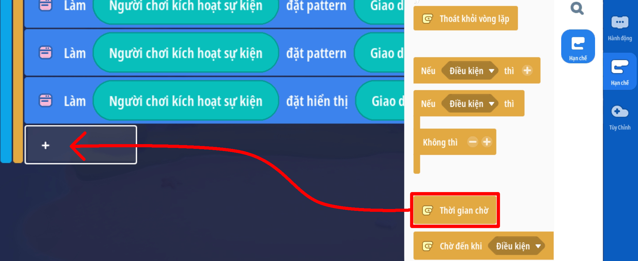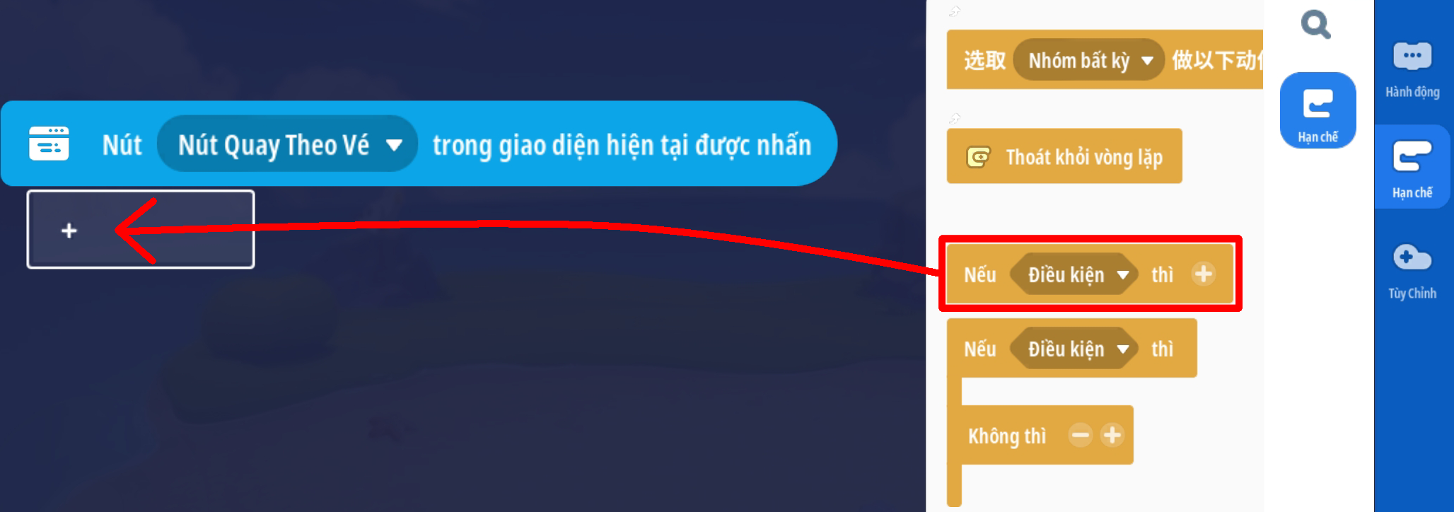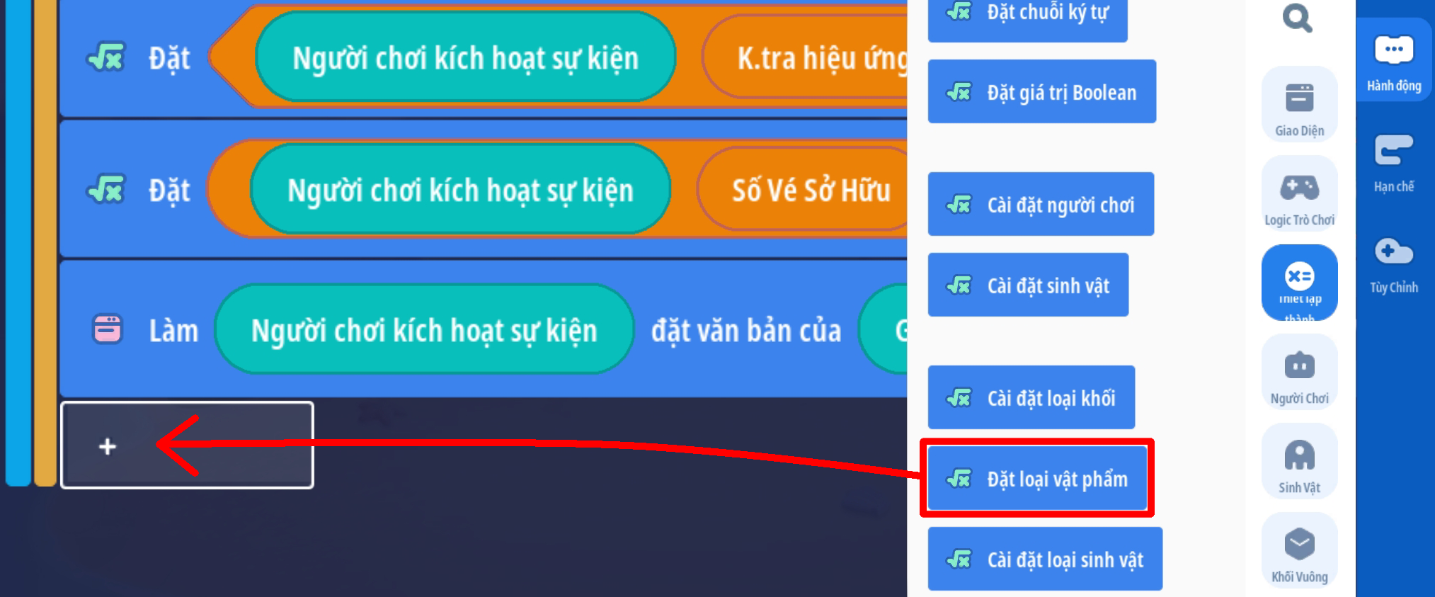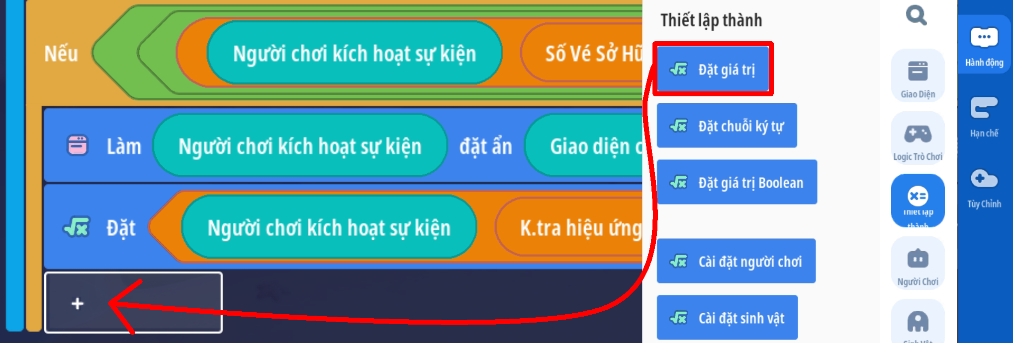 - Tạo sự kiện người chơi ấn nút: 'Quay Theo Vé' với 2 điều kiện: