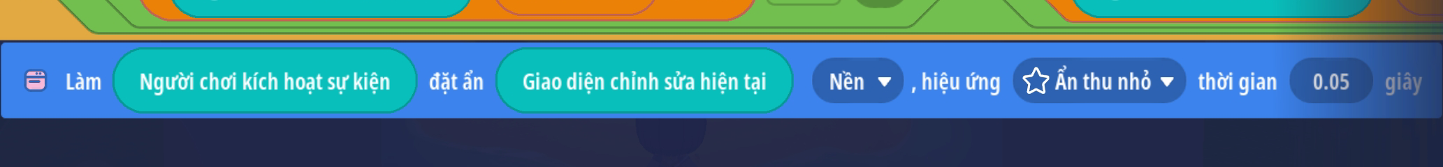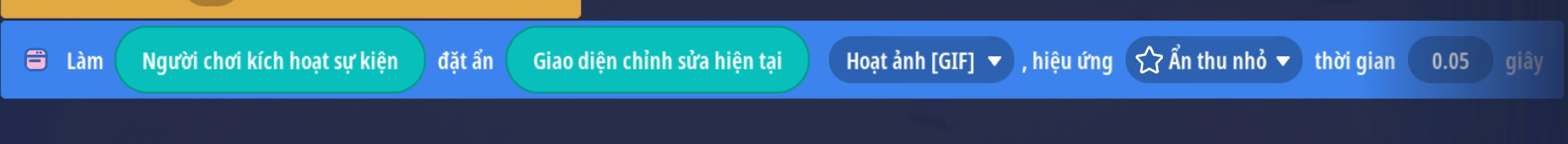 - Thiết lập thời gian chờ hiệu ứng chạy xong sẽ ẩn giao diện đó