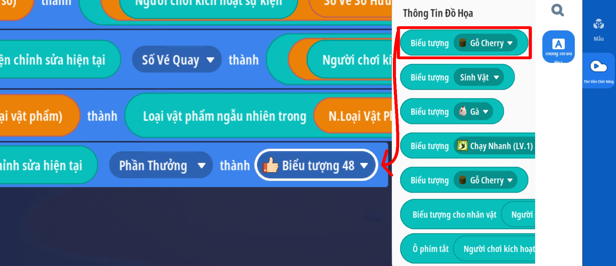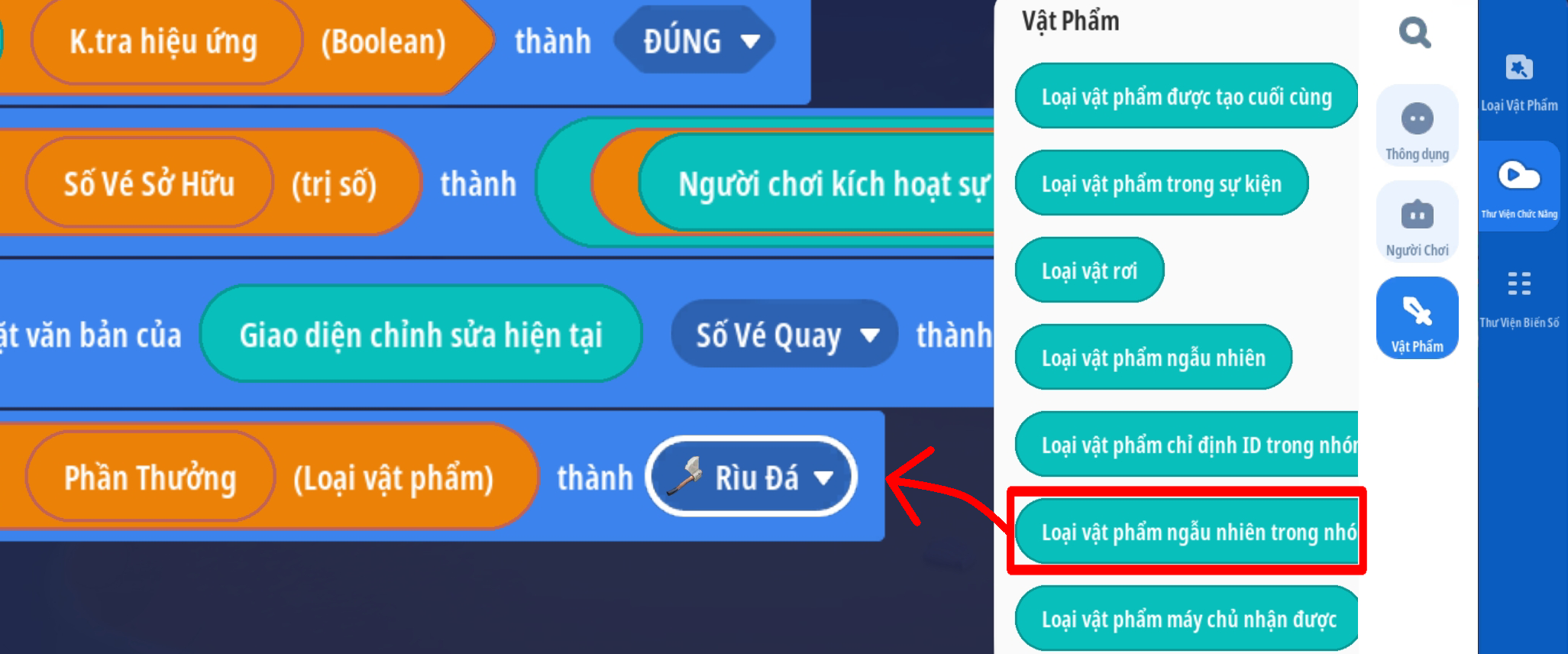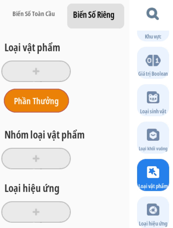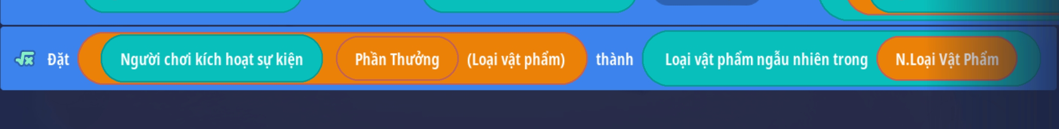 - Tạo biến số toàn cầu: Để lưu các loại phần thưởng sẽ xuất hiện