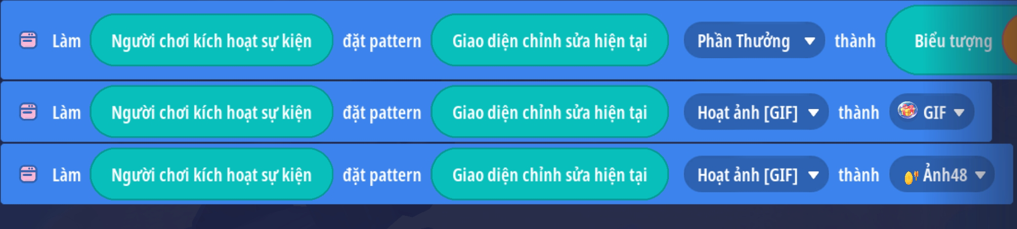 - Sao chép hành động từ trigger đập trứng theo vé