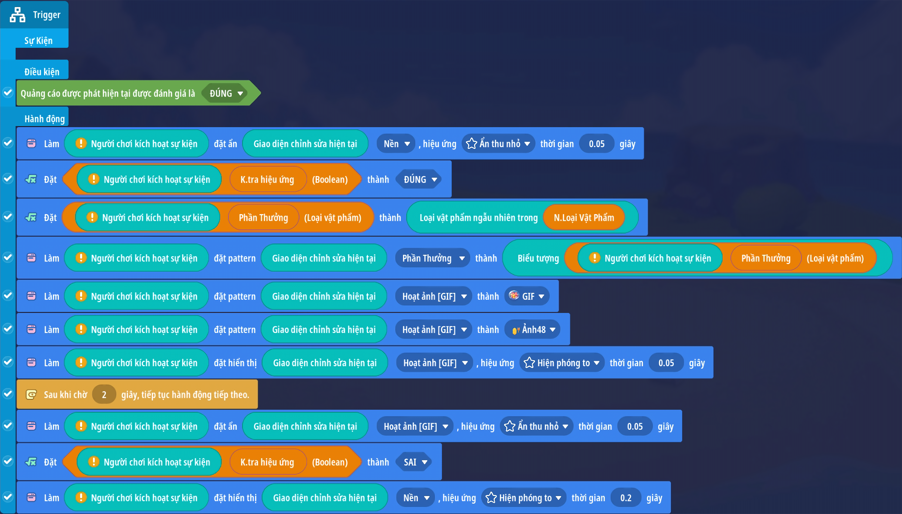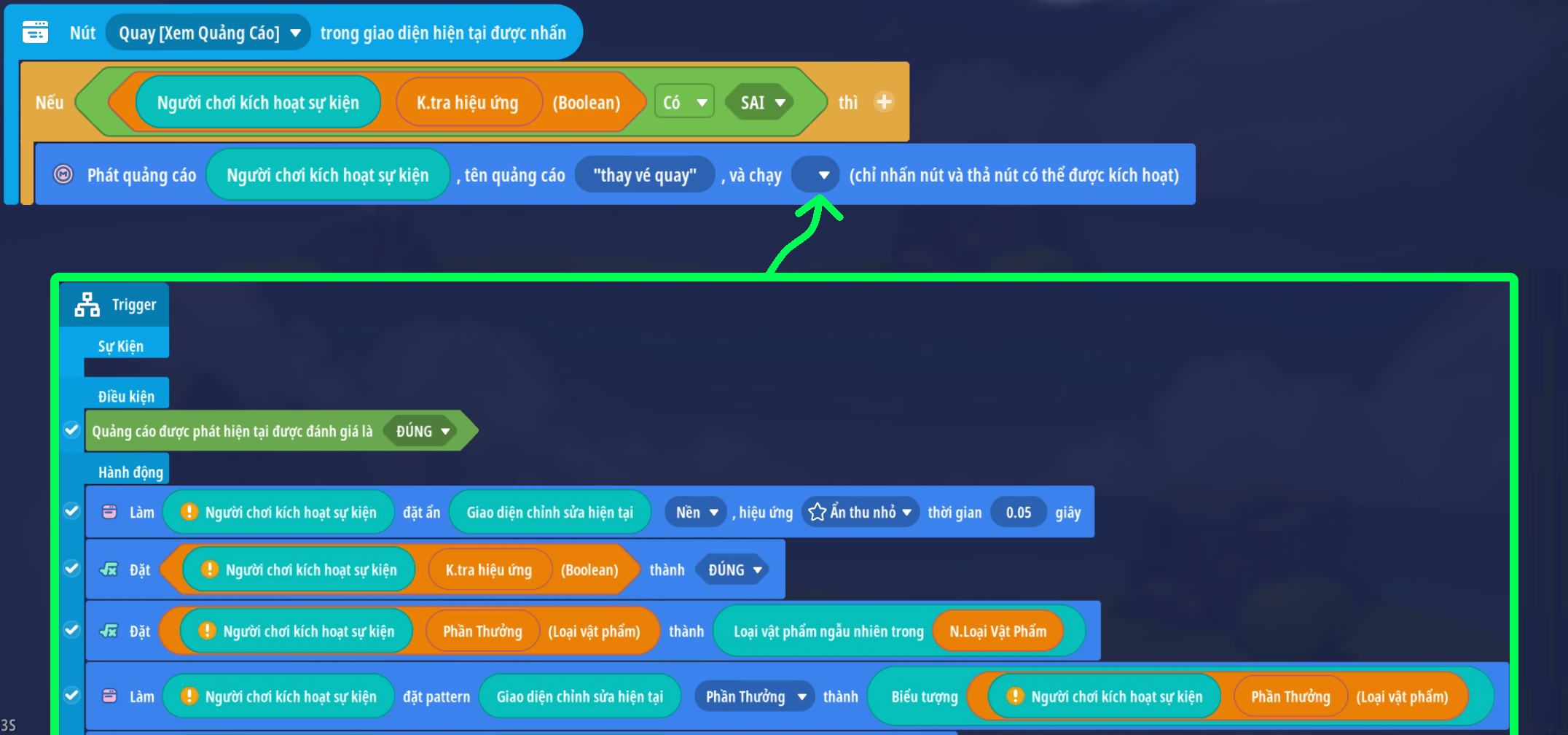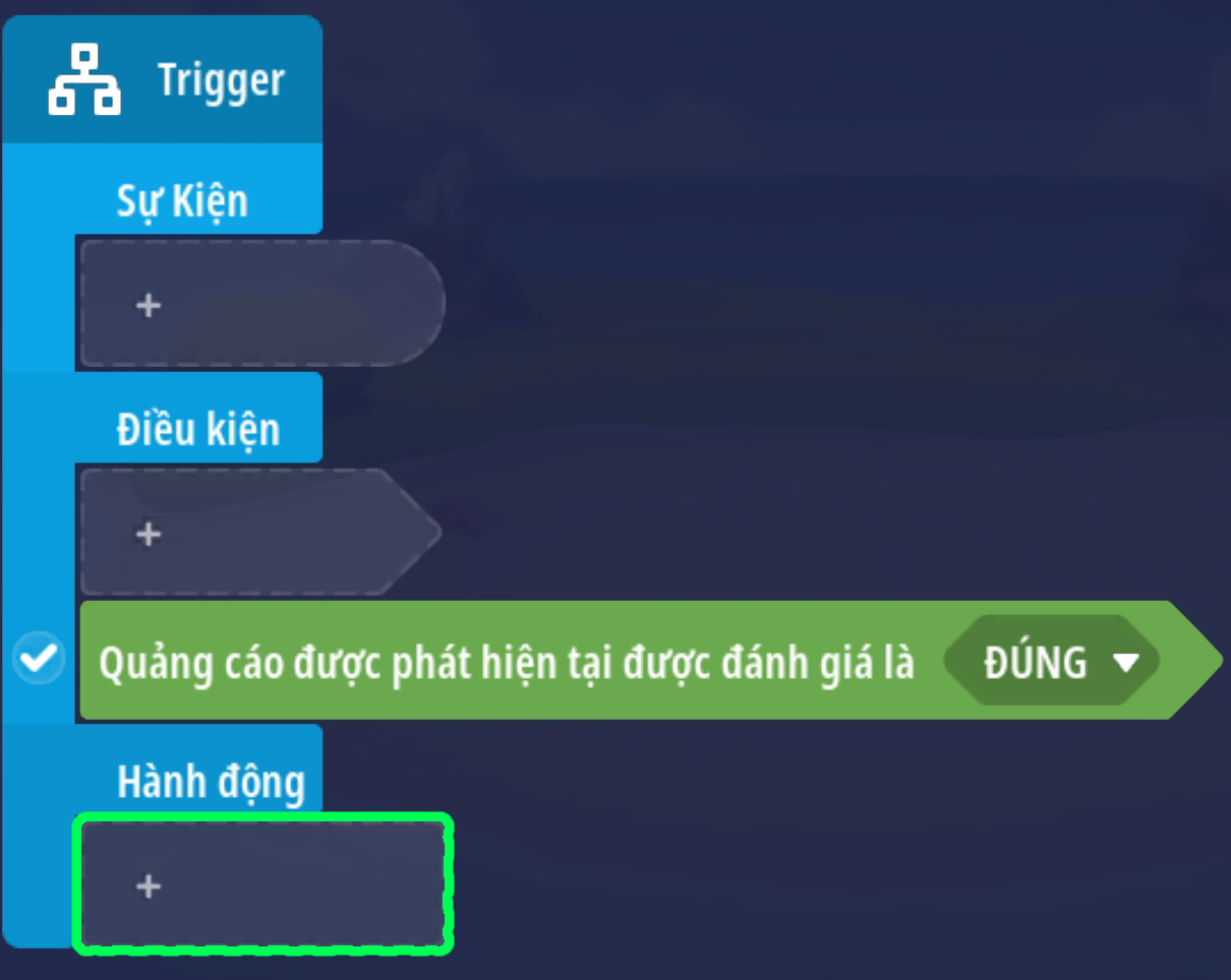 - Tạo trigger xác định người chơi xem quảng cáo chưa