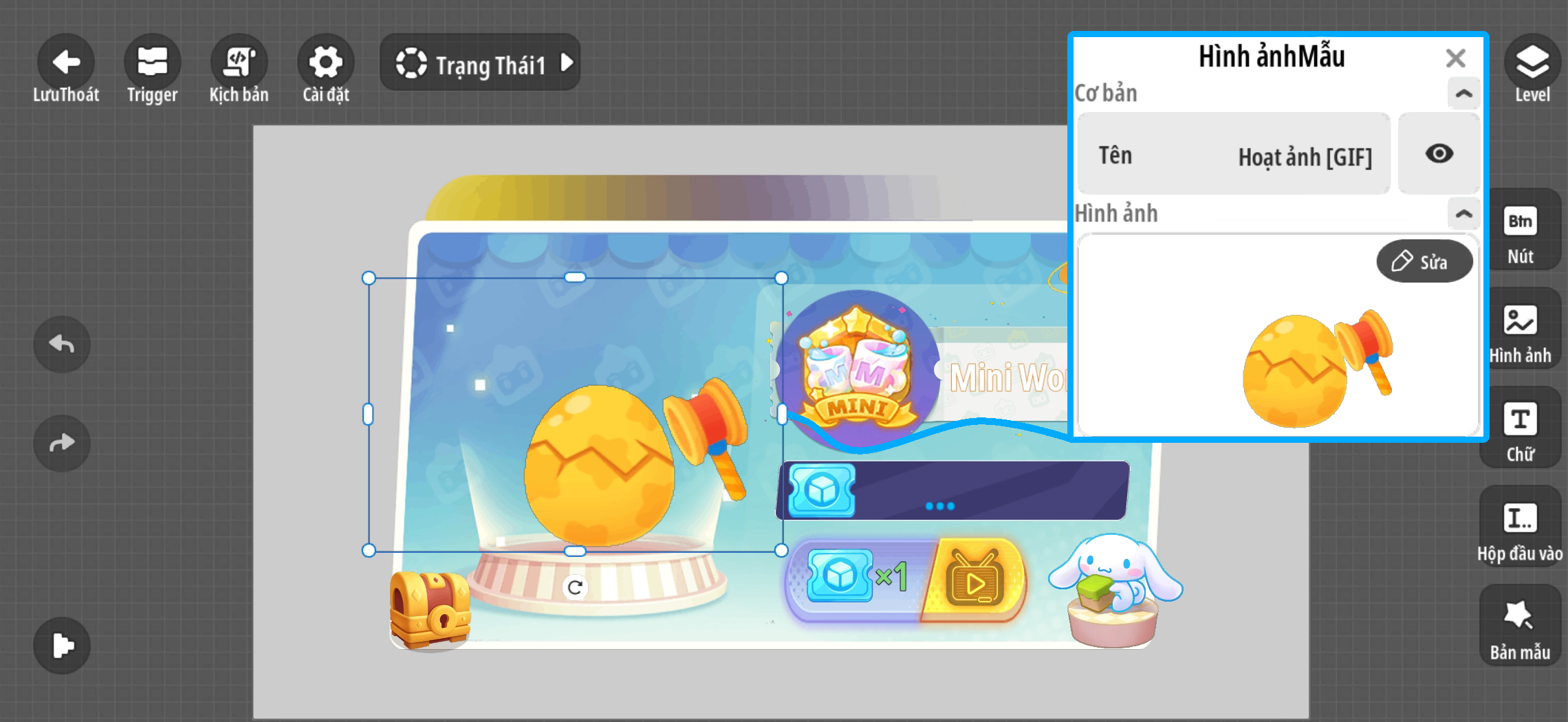 - Đặt nội dung hình ảnh 'Hoạt ảnh [GIF]' thành 1 hình ảnh bất kì sau đó đặt lại thành gif hiệu ứng đã chuẩn bị để phát động hiệu ứng đập trứng