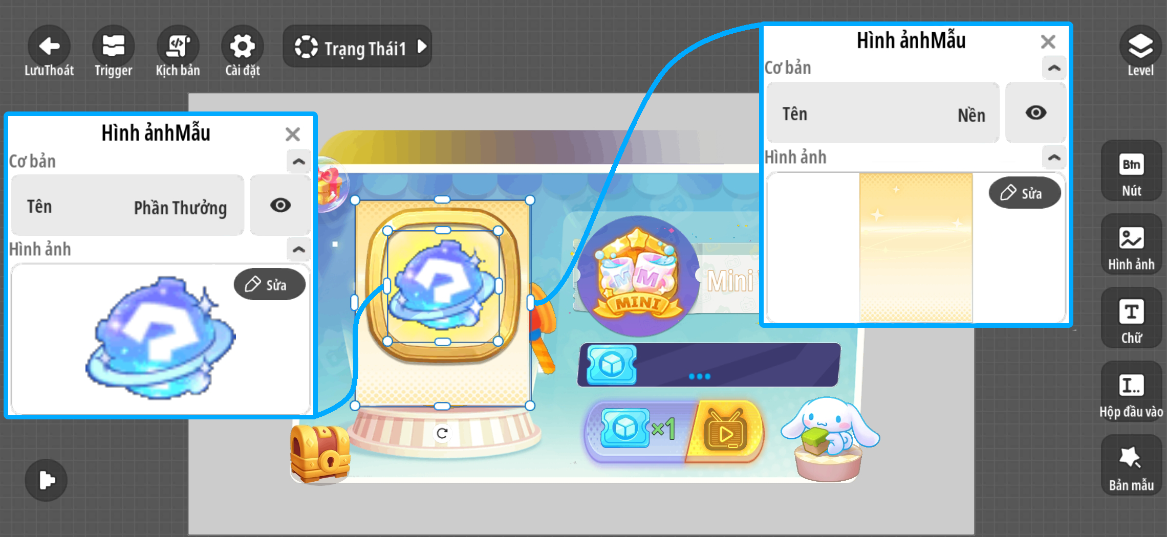 - Hiện thành phần 'Nền' có chứa hình ảnh 'Phần Thưởng'