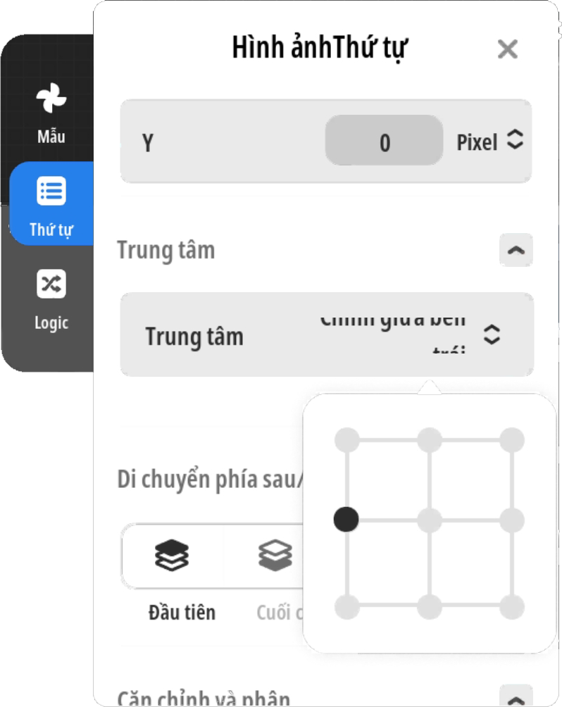 - Bước 2: Tạo UI hình ảnh “Thanh HP” thành phần con của UI “Nền” thiết lập vị trí trung tâm bên trái, ghi nhớ độ rộng thành phần này