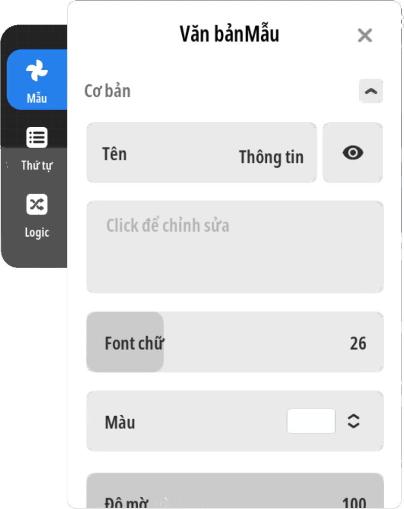 - Bước 3: Tạo UI văn bản “Thông tin” phần con của UI “Nền” chỉnh độ rộng thích hợp để hiện thị văn bản ( phù hợp nhất-chỉnh rộng ngang UI “Nền” ), thiết lập văn bản căn giữa