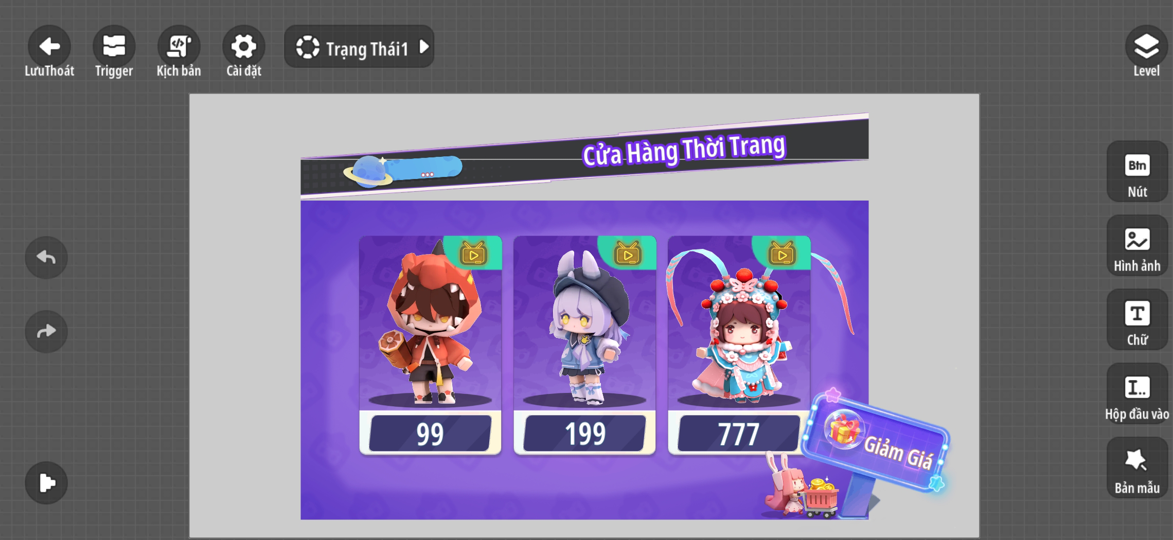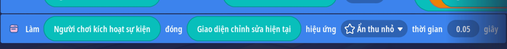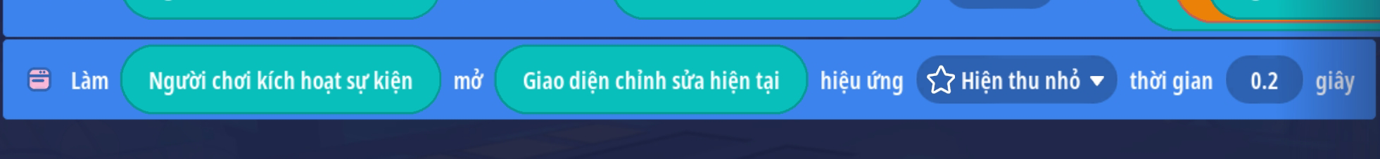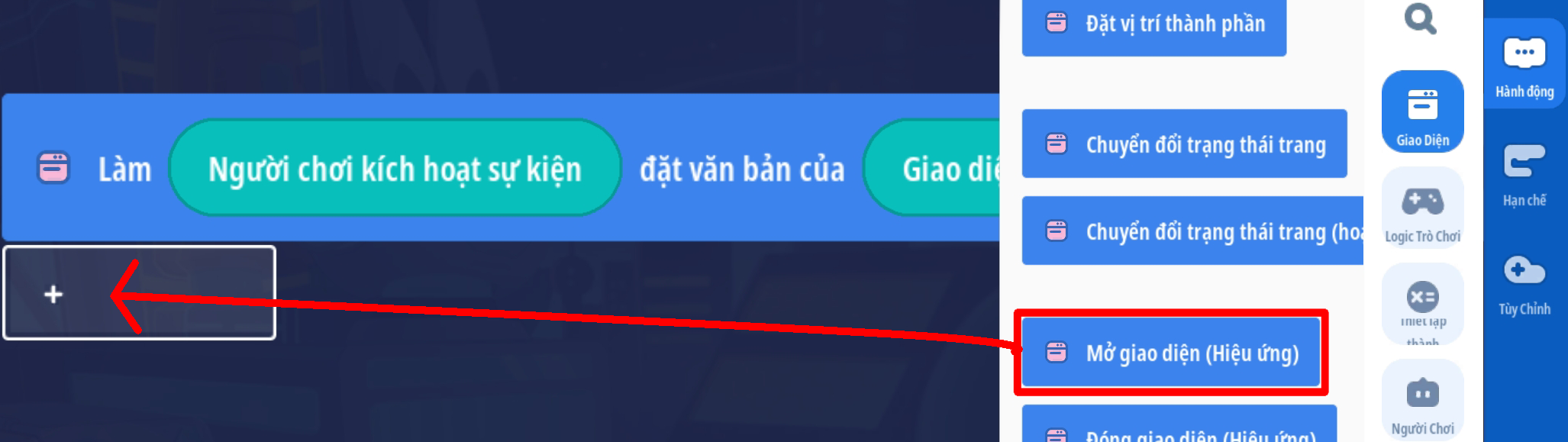 - Thêm hành động mở giao diện ( Sử dụng hiệu ứng sẵn có của trò chơi để khi mở cửa hàng trở lên sống động hơn )