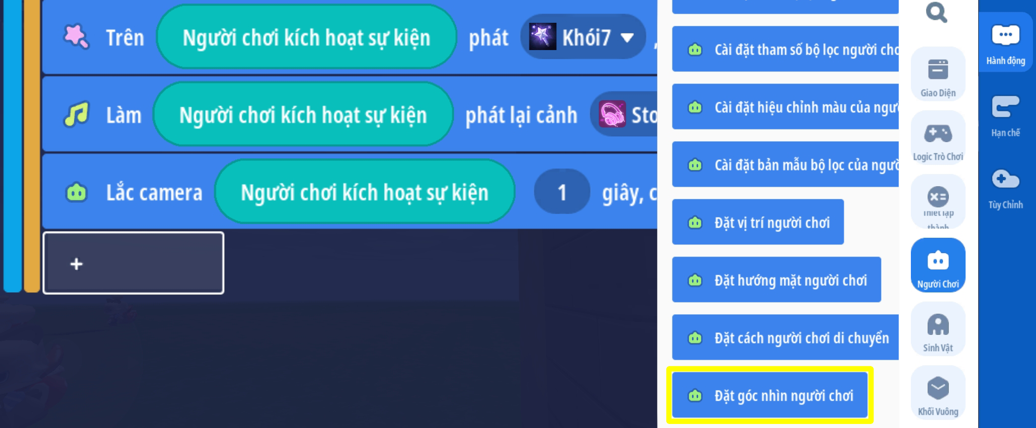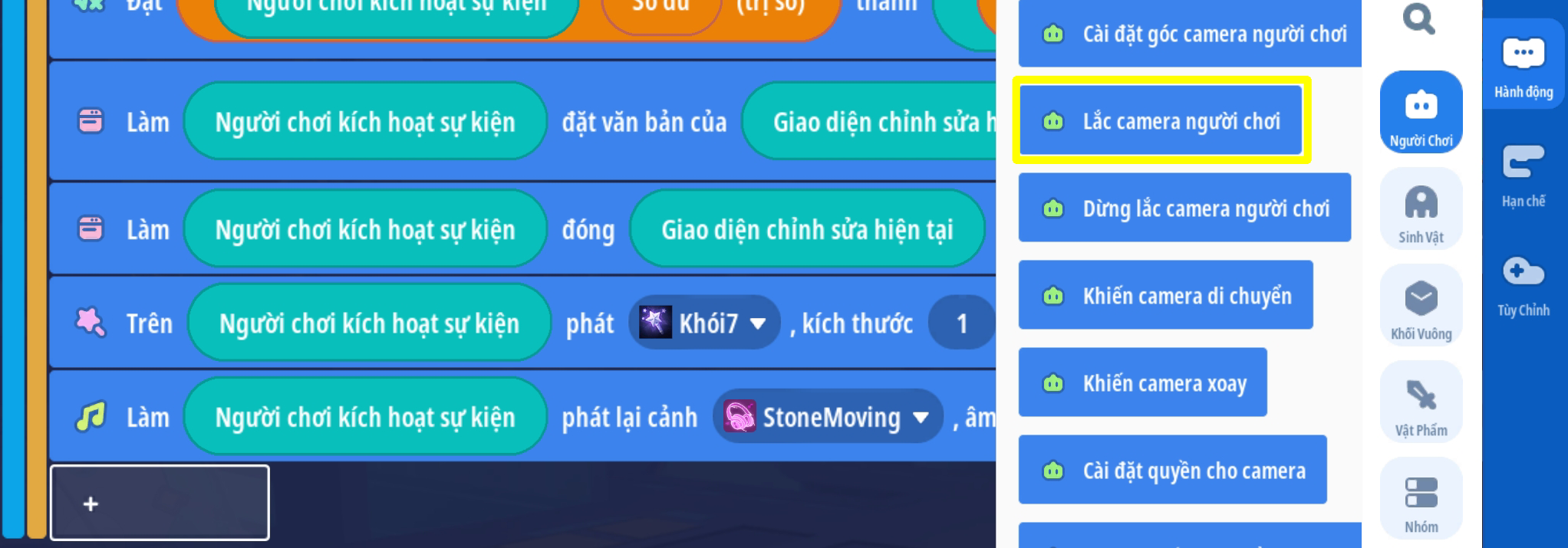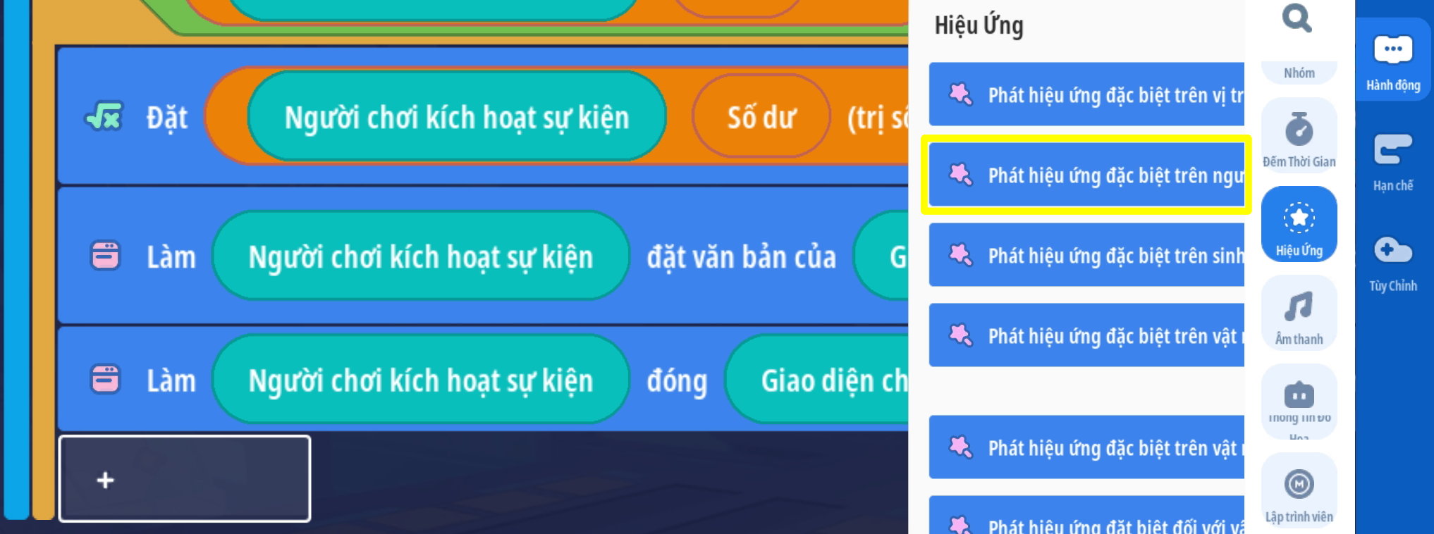 - Thêm hành động mở giao diện ( Sử dụng hiệu ứng sẵn có của trò chơi để khi mở cửa hàng trở lên sống động hơn )