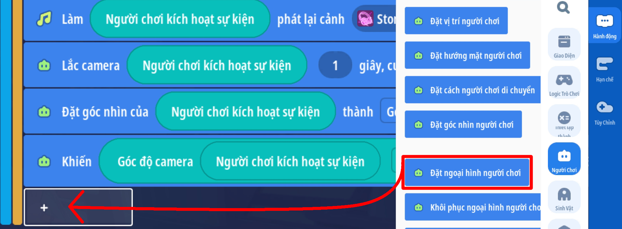 - Thêm hành động đặt ngoại hình người chơi thành skin thích hợp
