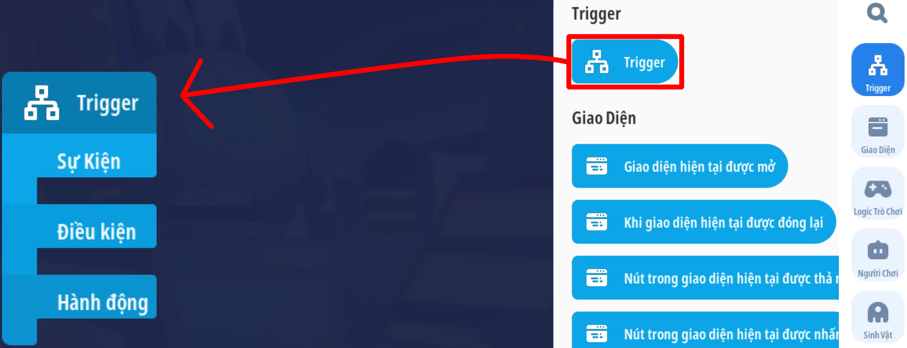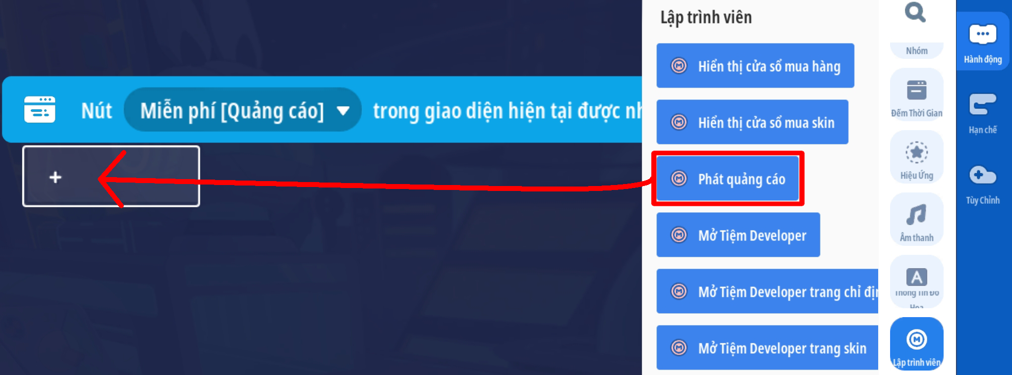 - Tạo trigger người chơi nhất nút 'Miễn phí[Quảng cáo] sẽ tiến hành kích hoạt xem quảng cáo