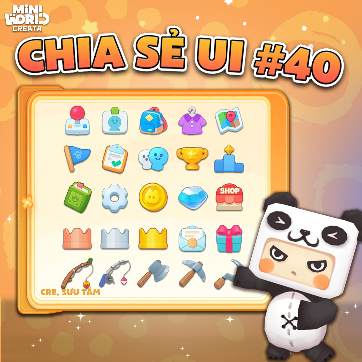 - Với tông màu tươi sáng từ biểu tượng nhiệm vụ, túi đồ cho đến công cụ khai thác đều được thiết kế cực kỳ chi tiết