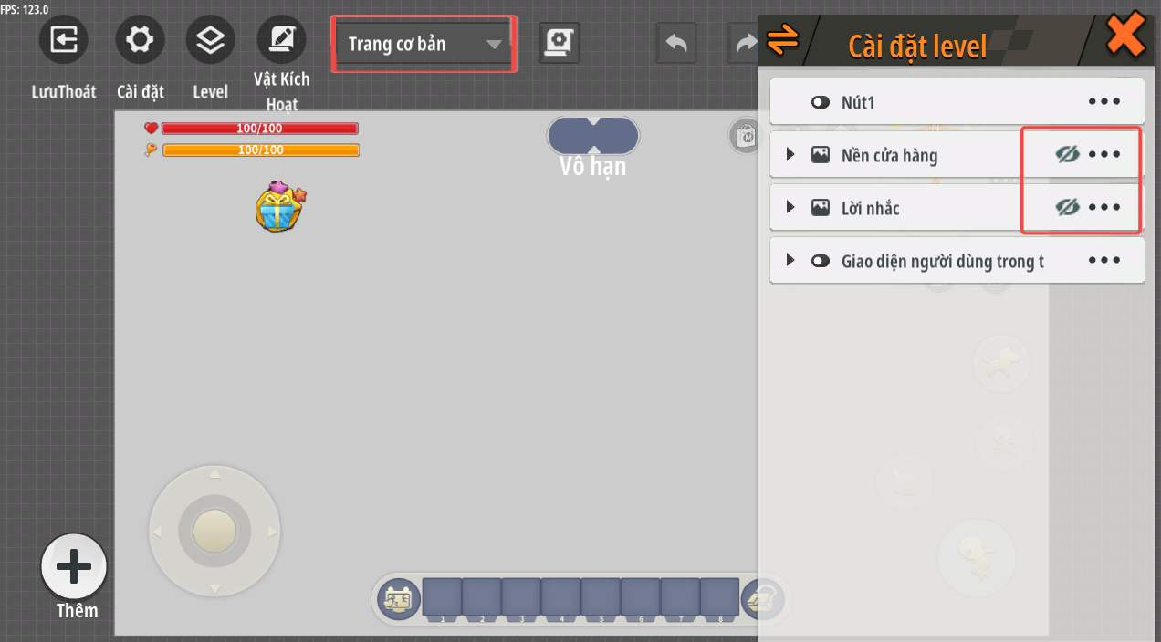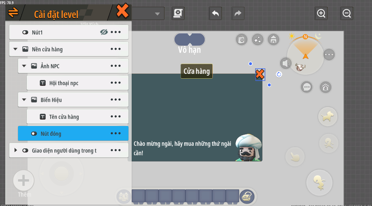 - Biển hiệu cửa hàng và NPC đều là tập hợp con của nền Cửa hàng.