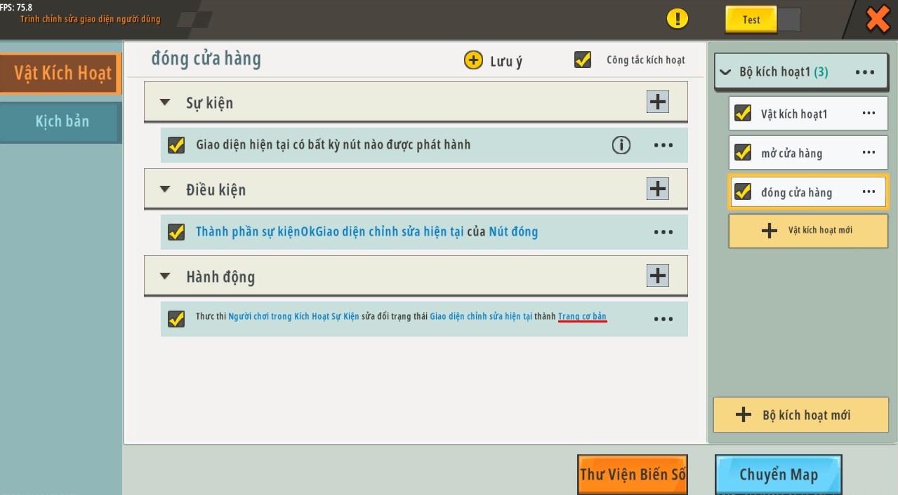 Sử dụng cách tương tự để tạo trình kích hoạt mới khi người chơi nhấp vào “nút đóng” và chuyển sang trạng thái “Trang cơ bản”.