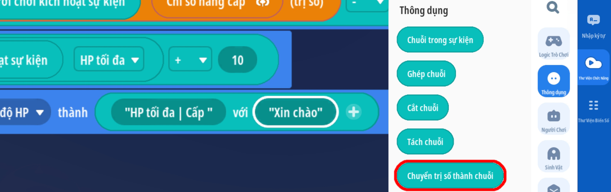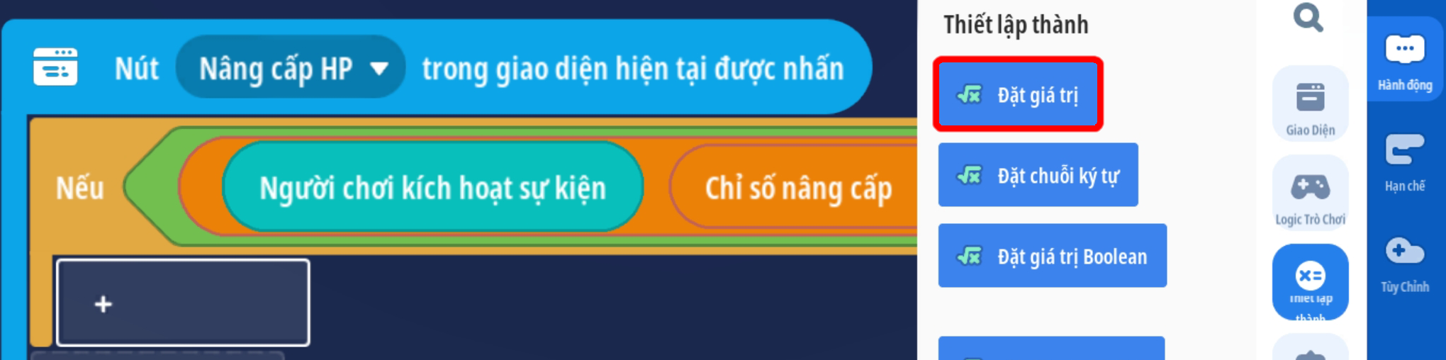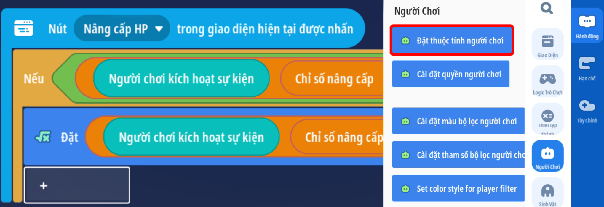 - Đặt thuộc tính người chơi tăng thêm giá trị tương ứng thích hợp