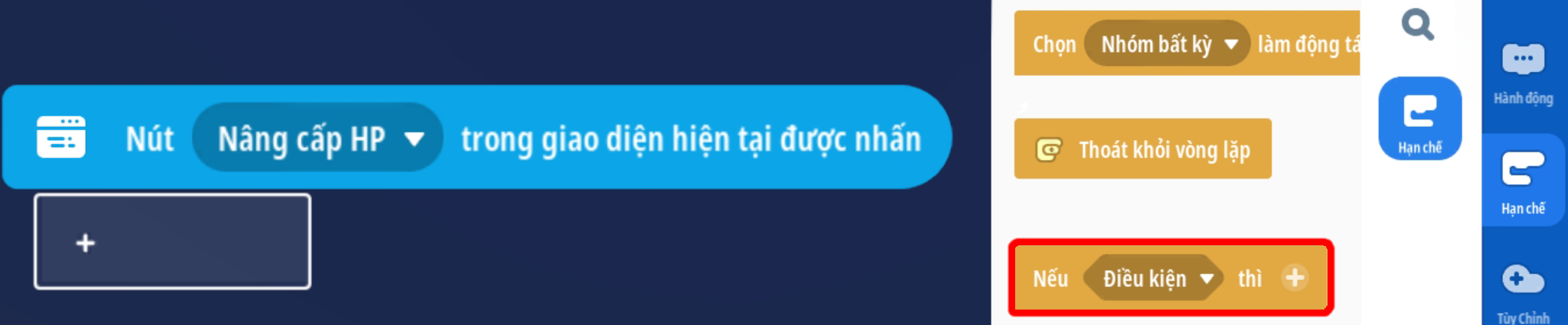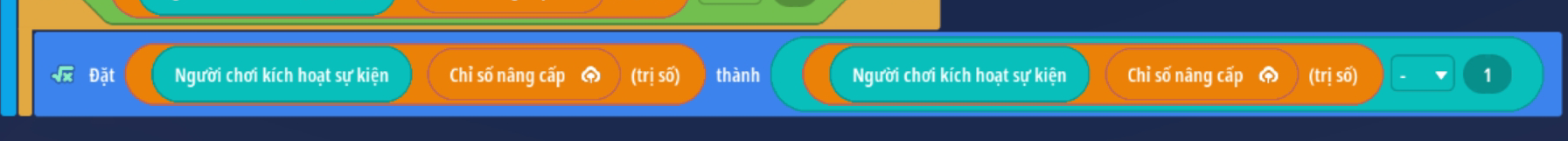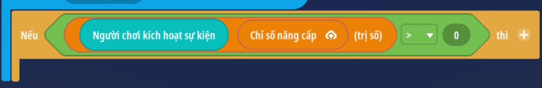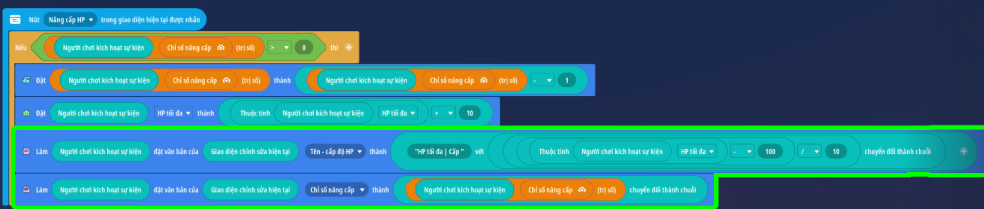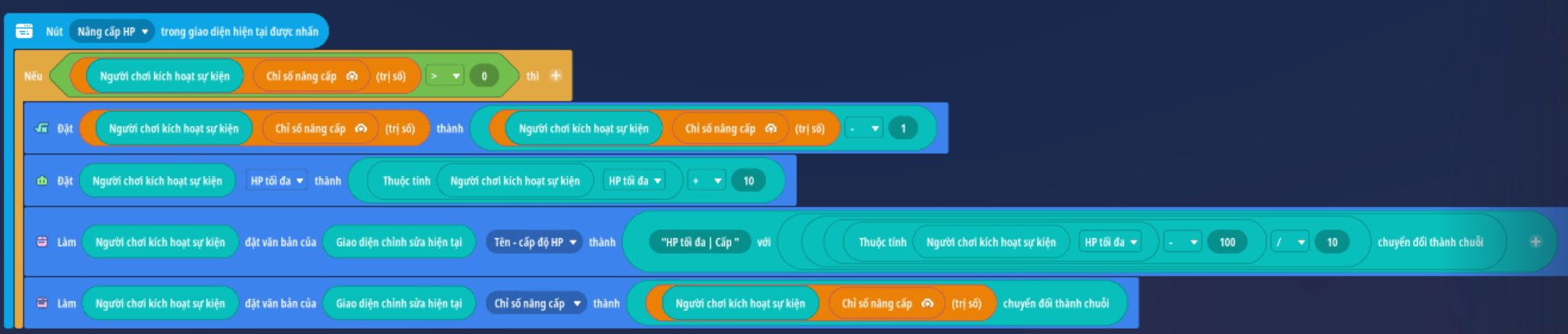 - Kích hoạt khi người chơi nhấp nút nâng cấp với số điểm lớn hơn 0, trừ điểm tiến hành nâng cấp