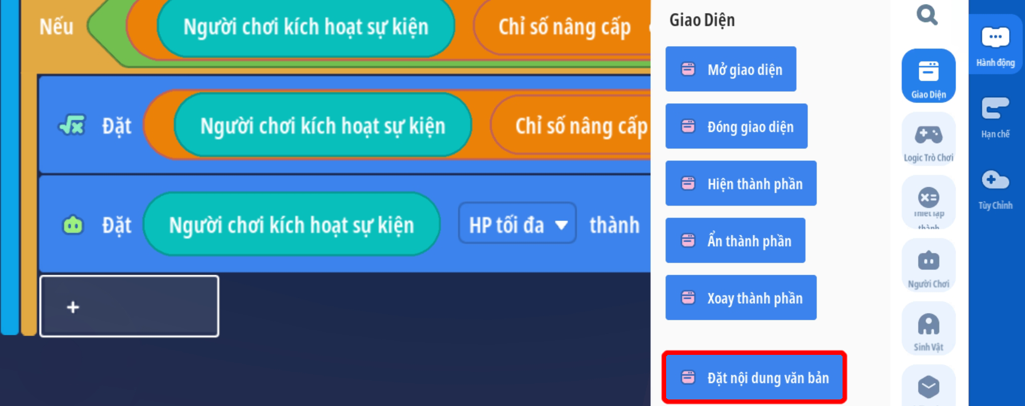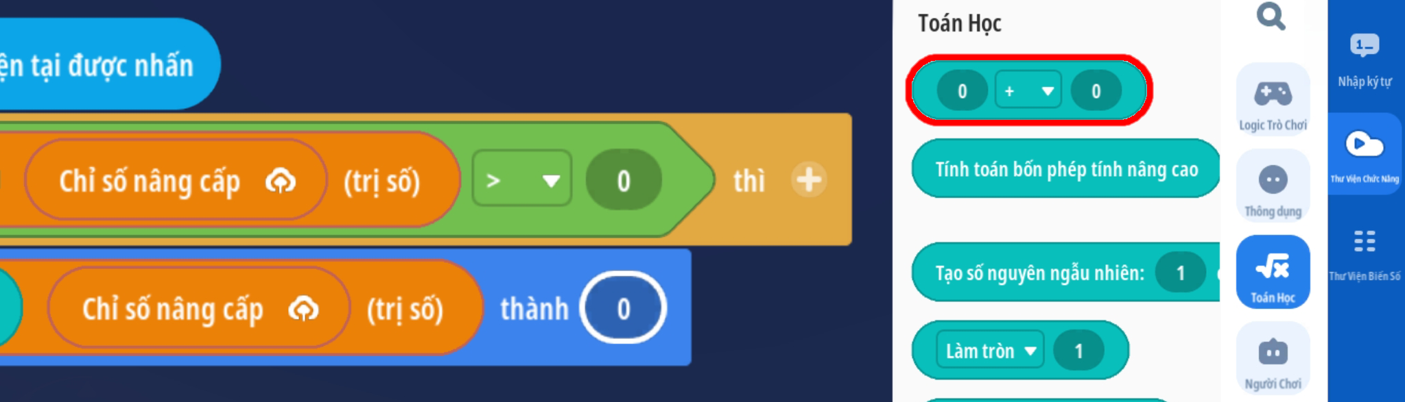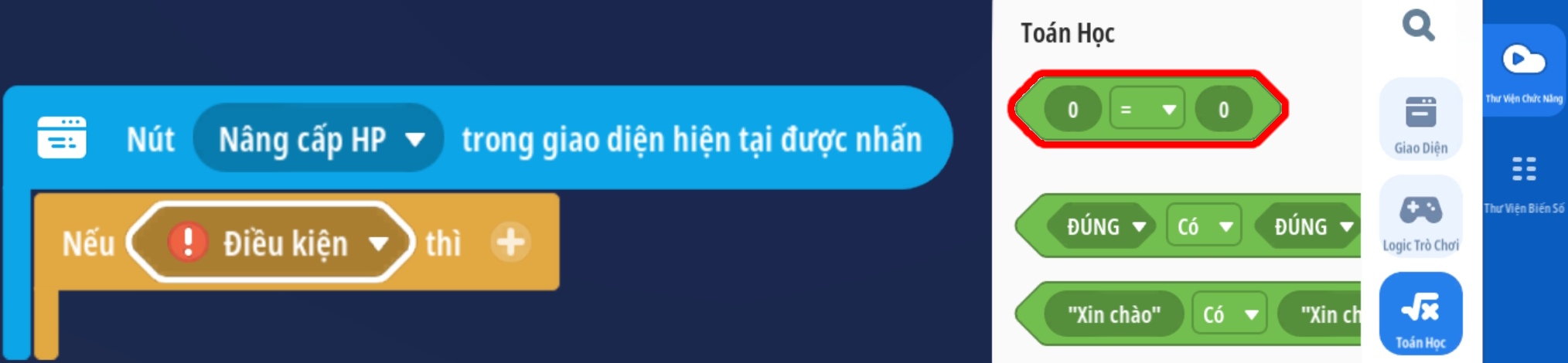 - Kích hoạt khi người chơi nhấp nút nâng cấp với số điểm lớn hơn 0, trừ điểm tiến hành nâng cấp