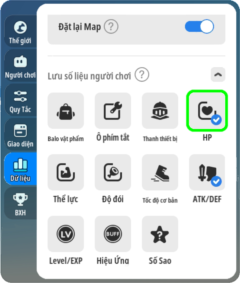 - ( Với bản đồ sử dụng lối chơi lâu dài có lưu dữ liệu người chơi )