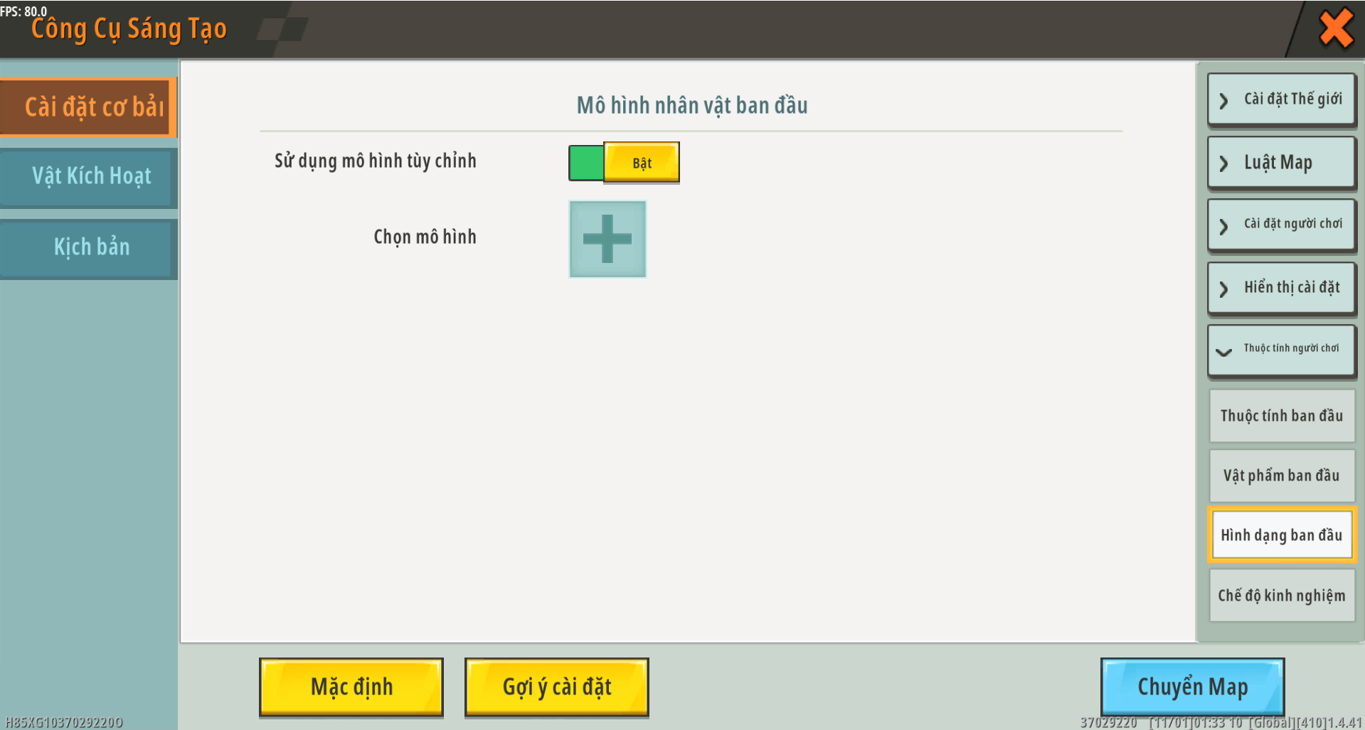 Bạn có thể đặt cài đặt cơ bản của người chơi trong thuộc tính người chơi, bao gồm thuộc tính lần đầu, vật phẩm lần đầu, lần xuất hiện lần đầu và chế độ trải nghiệm.