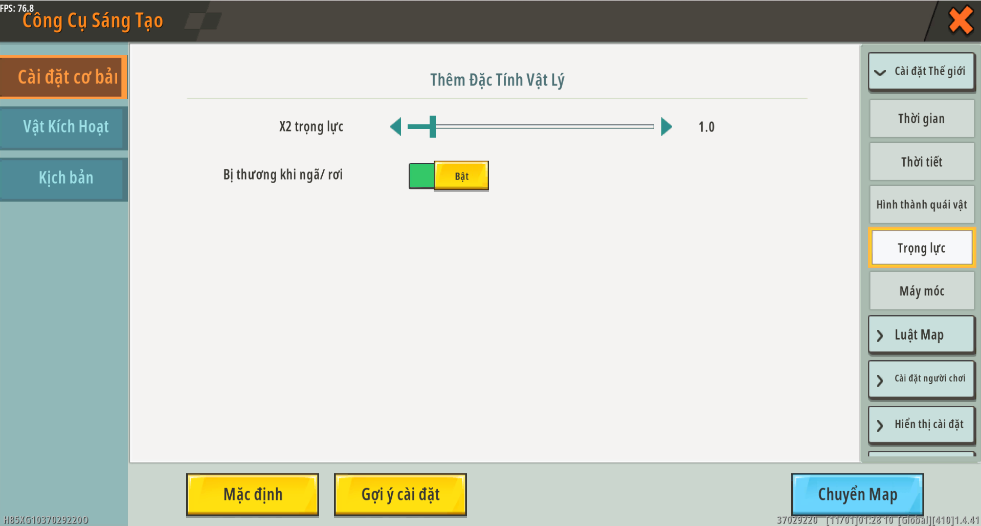 - Sát thương do rơi (bật/tắt): Đặt riêng xem có bật sát thương do rơi hay không.