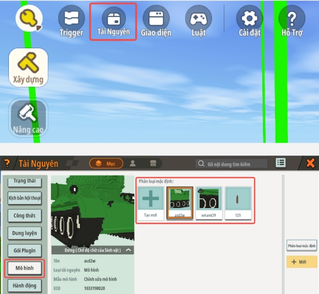 1. Trò chơi chuyển sang chế độ sáng tạo/chỉnh sửa