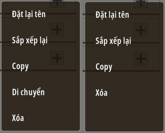 - Menu nhóm kích hoạt: Tương tự như Menu kích hoạt.