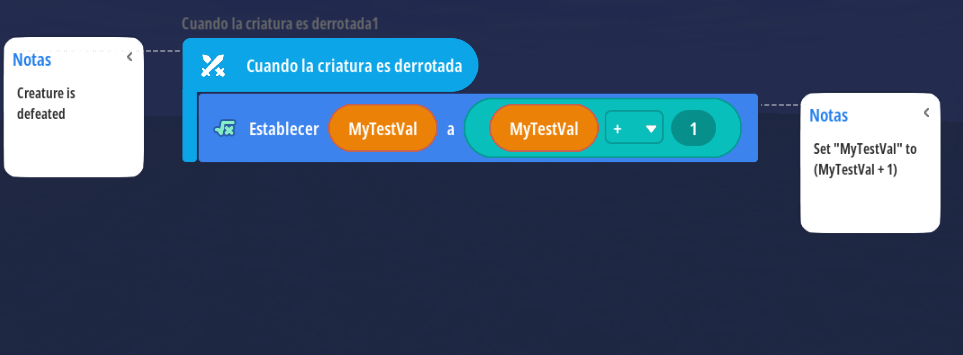 Giả sử chúng ta muốn rằng khi một sinh vật bị đánh bại, một biến sẽ tăng lên 1. Chúng ta sẽ làm phần đó bằng trigger. Và khi biến đó lớn hơn hoặc bằng năm, chúng ta sẽ gửi một tin nhắn đến tất cả người chơi với nội dung “Bạn đã thắng!”, sau đó đặt lại biến đó về 0. Chúng ta sẽ làm phần đó bằng script.